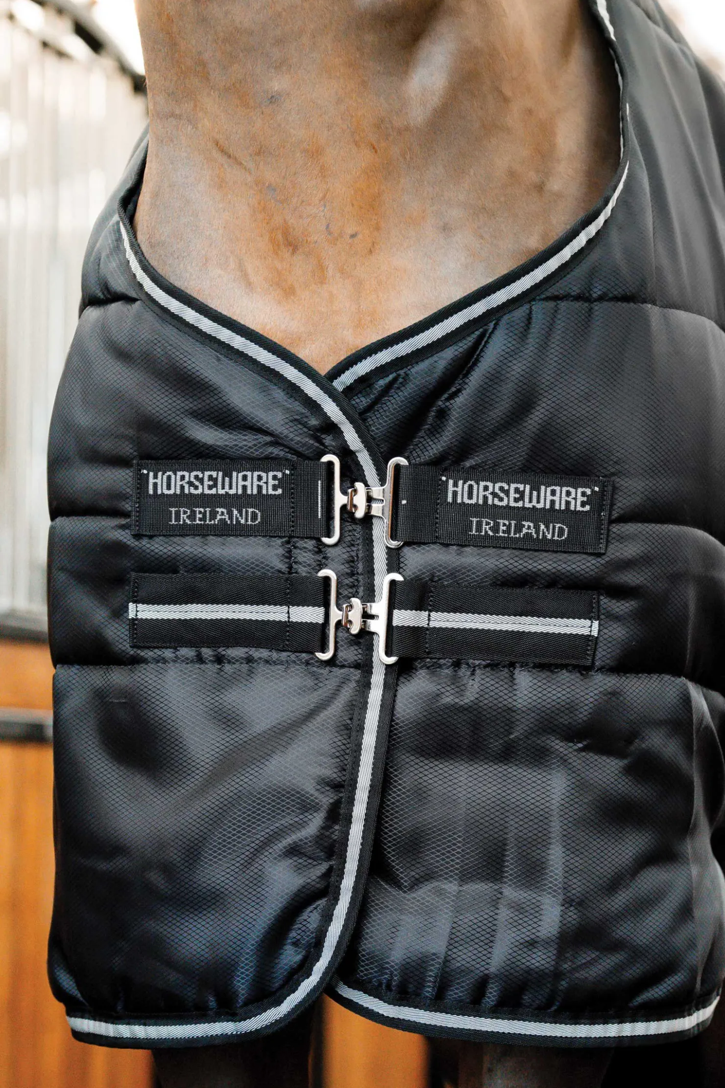 Oppdag den eksepsjonelle allsidigheten og effektiviteten til Horseware® Easy-Layer Stable Plus (200g Medium). Dette avanserte stalleteppet er designet for å imøtekomme alle hestens behov, og fungerer som et ideelt mellomlag som kan transformeres til et tyngre stalle- eller utendørsdekkenfôr. Enten det brukes som et frittstående stalleteppe, med eller uten en Horseware® foring, eller i kombinasjon med hvilken som helst Horseware® kompatibel utendørsdekken, gir det uovertruffen tilpasningsevne. Laget av 210D Diamond Polyester Ripstop, har Easy-Layer Stable Plus 200g imponerende styrkeegenskaper som sikrer holdbarhet og lang levetid. Det spesialformulerte vannavstøtende stoffet forhindrer at flekker setter seg fast, og reduserer dermed lukt og holder teppet renere lenger. Dette teppet inkluderer flere foringsløkke- og festebånd, som gir rask og enkel påføring av foringer eller ytre lag, og reduserer tiden brukt på å dekke hesten betydelig. Den holdbare, vannavstøtende og flekkavstøtende ytterstoffet er komplementert med fibrefill-isolasjon for ekstra varme. Nøkkelegenskaper inkluderer krok- og løkkefestebånd på utsiden, liner-loops på innsiden, en avtakbar hette for ekstra beskyttelse og to avtakbare kryssgjorder for et sikkert passform. Den rette frontlukningen sikrer enkel bruk, mens de fremre benbuene gir bevegelsesfrihet, og svaberommet gir ekstra stabilitet. Stoffets sammensetning inkluderer en polyesterforing som forbedrer glansen, noe som gjør Horseware® Easy-Layer Stable Plus 200g både funksjonelt og stilfullt, og sikrer at hesten din forblir komfortabel og beskyttet. Velg Horseware® Easy-Layer Stable Plus 200g for en allsidig, slitesterk og brukervennlig løsning som dekker alle dine stall- og utendørsbehov.