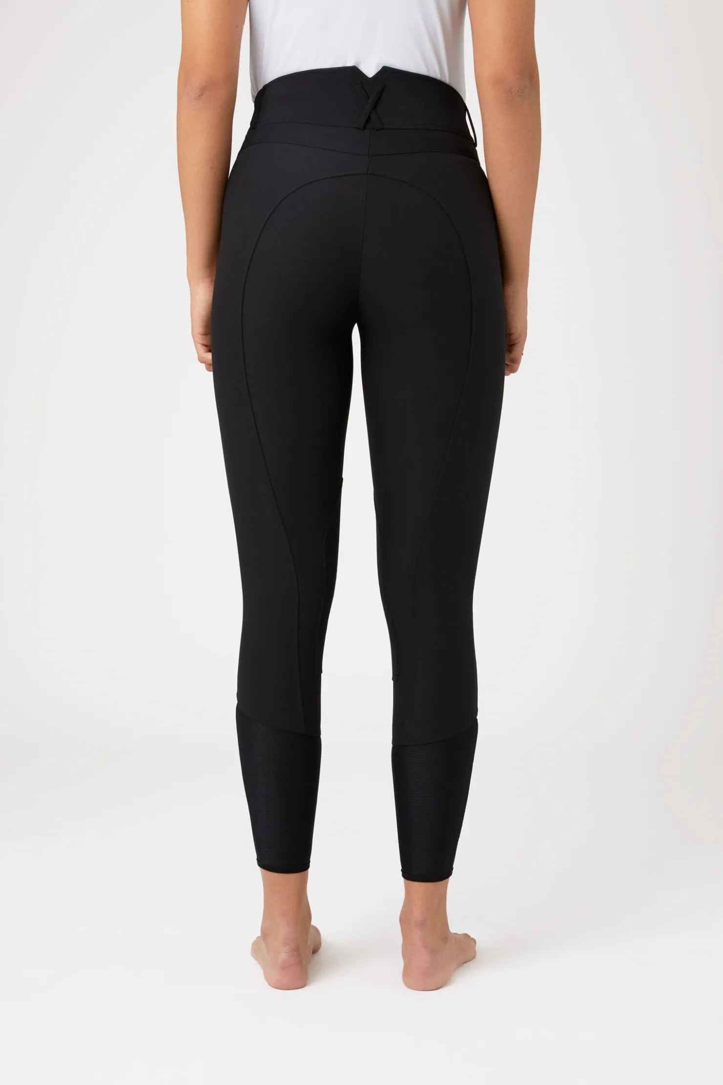 Lette ridebukser med syntetisk forsterking på knærne er et perfekt valg på varme sommerdager. Disse ridebuksene har en slankende effekt og et høyt liv som hjelper deg med med letthet å beholde den korrekte sitsen. Nettingstoffet på beinet er kjølende og pustende slik at du holder deg komfortabel under støvlene.