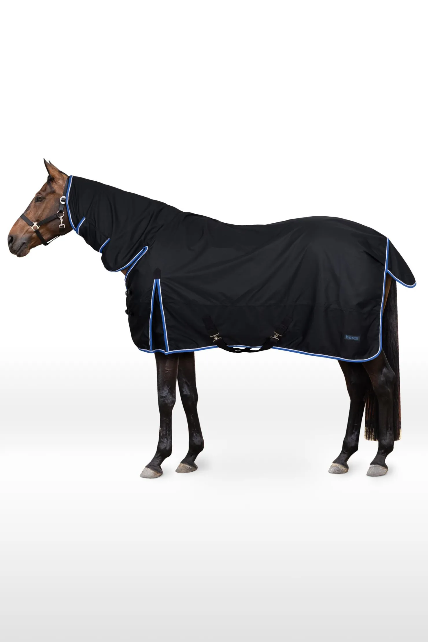 Dette lette utedekkenet beskytter hesten fra ører til hale, og holder den tørr.