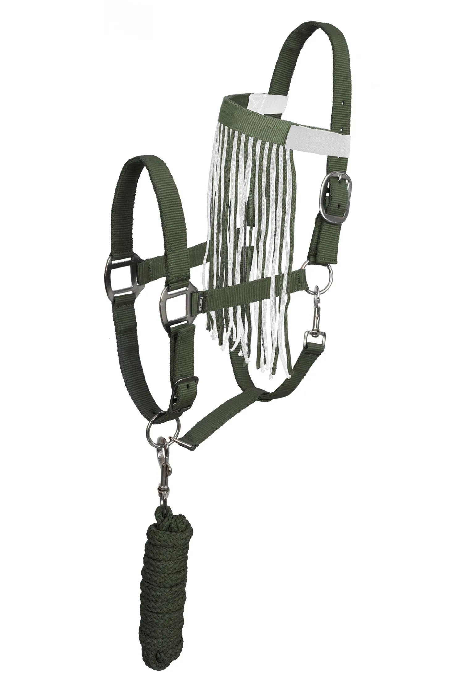 Horze Moreton settet er designet i nøytrale farger for å matche ditt eget utstyr gjennom hele året.Grimen kan justeres så den passer perfekt til hestens hode, og det flettede leietauet er robust og enkelt og holde.De avtakbare fluefrynsene holder distraherende insekter borte ved behov.