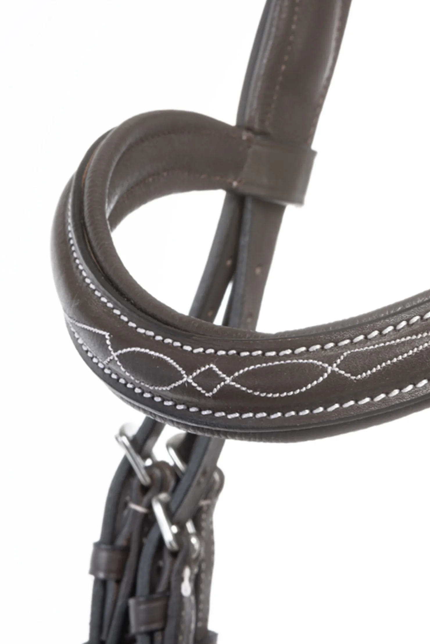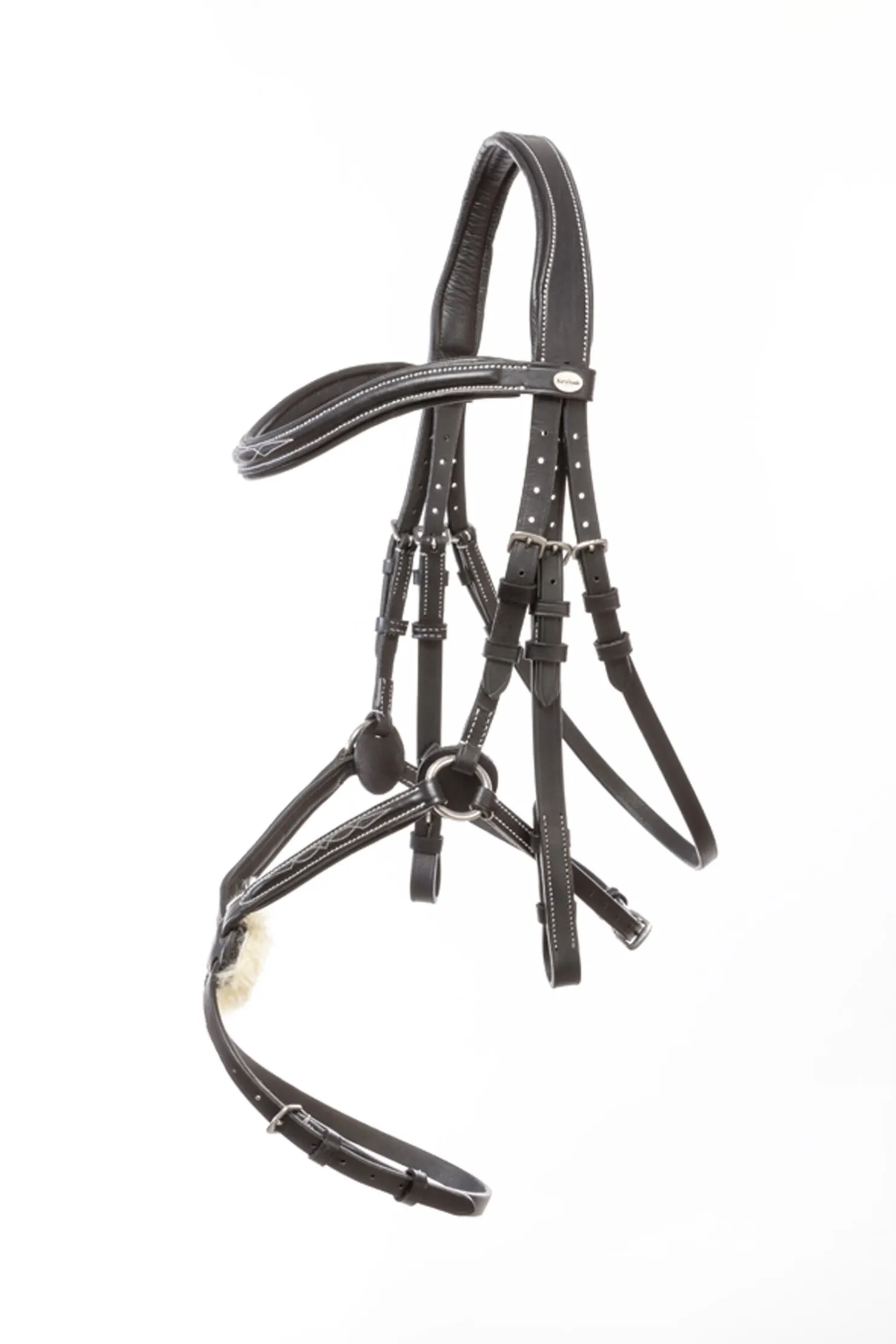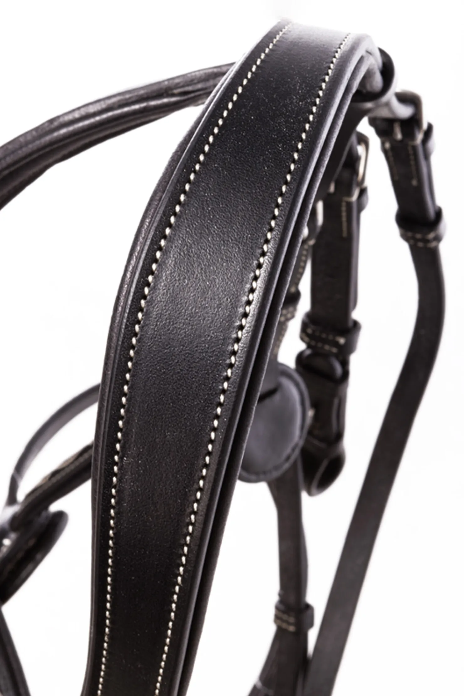 Hodelaget Diandro er laget av mykt lær og legger seg komfortabelt mot hestens hode. Nakkeremmen er justerbar på begge sider, anatomisk utformet og mykt polstret. Kontrastsømmer og dekorative broderier gir et sporty utseende. Nesepaden er utskiftbar og laget av ekte medisinsk lammeskinn. Bøyd lærpannebånd med dekorative broderier.
