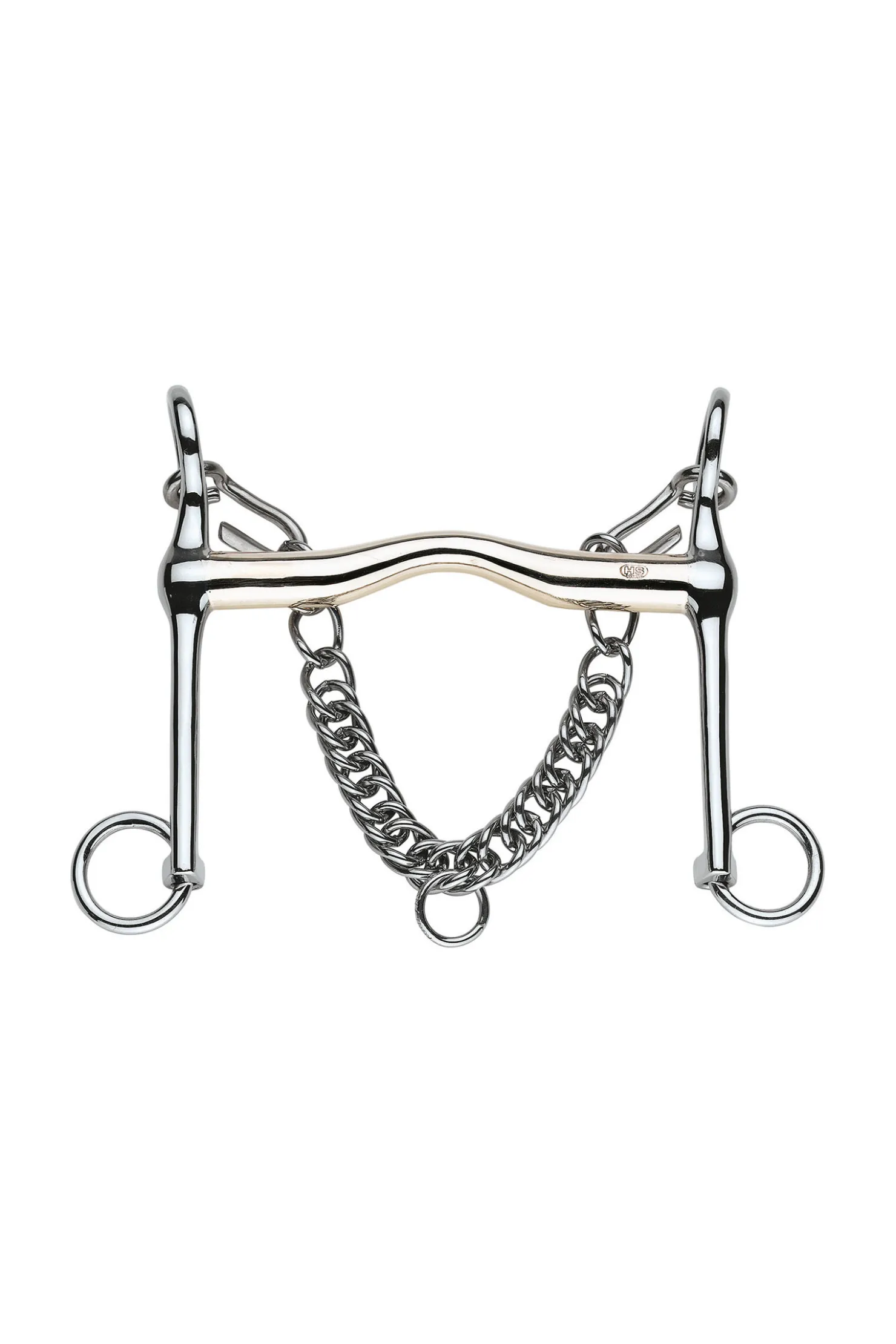 Kandarbitt med en lav port som gir plass til tungen uten å klemme den følsomme ganen. Munnstykket buer rundt tungen i en myk kurve.Et godt valg til hester som har problemer med kontakten.