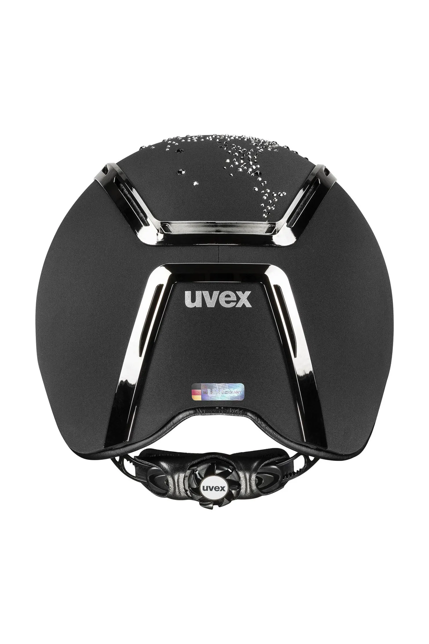 Toppen av denne elegante ridehjelmen er dekorert med en kaskade av Swarovski®-krystaller, innfelt i en skinnende kromramme. Mer enn 500 steiner glitrer som stjernestøv og er et ekte blikkfang! De er et tillegg til høykvalitets egenskaper som sikrer perfekt passform og best beskyttelse i alle situasjoner. Disse egenskapene inkluderer veganske lærremmer som du enkelt kan justere med en nyutviklet Y-deler, samt vår velprøvde hardshell-teknologi. Ideell for sportswomen som vet hva som skal til for å vinne.