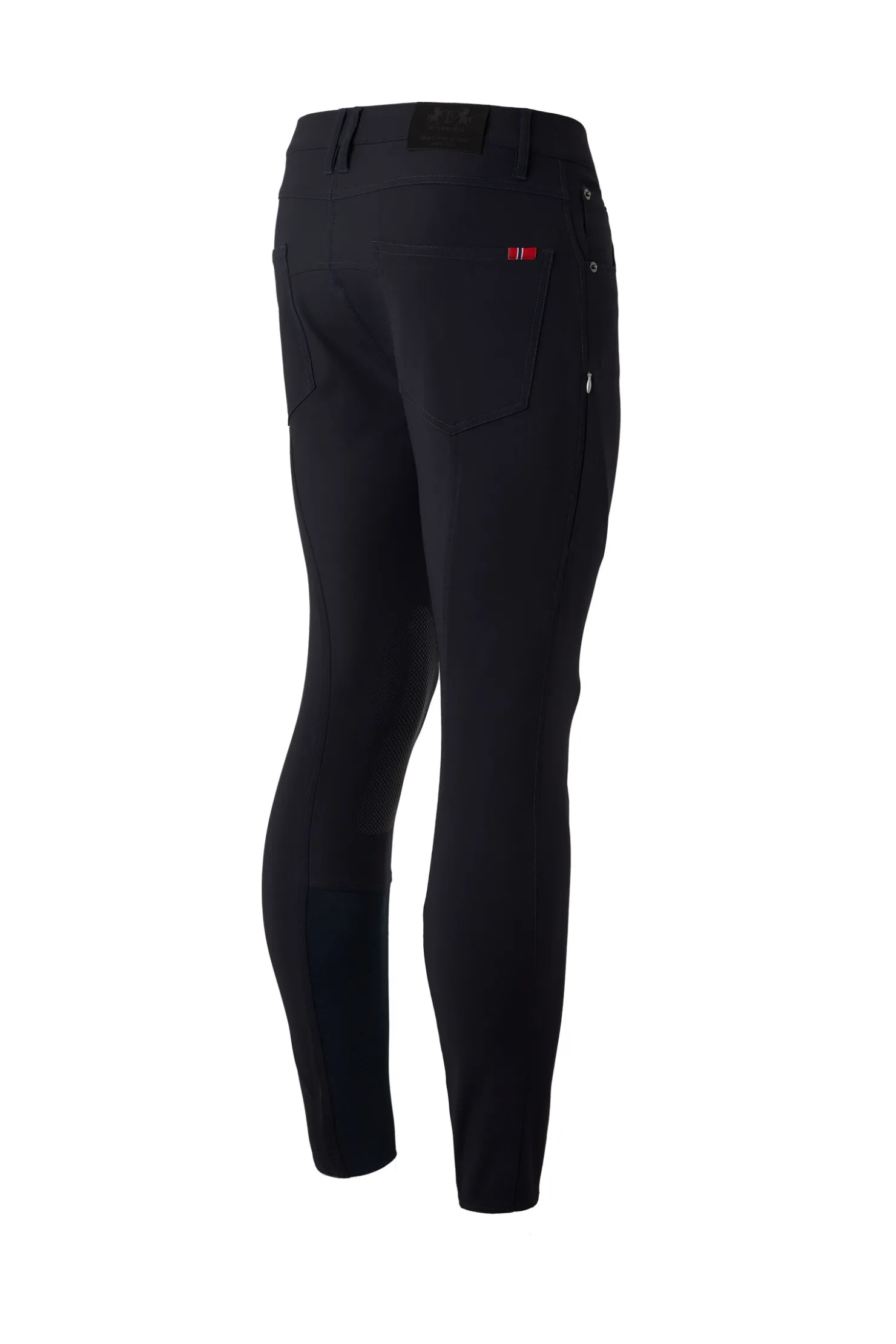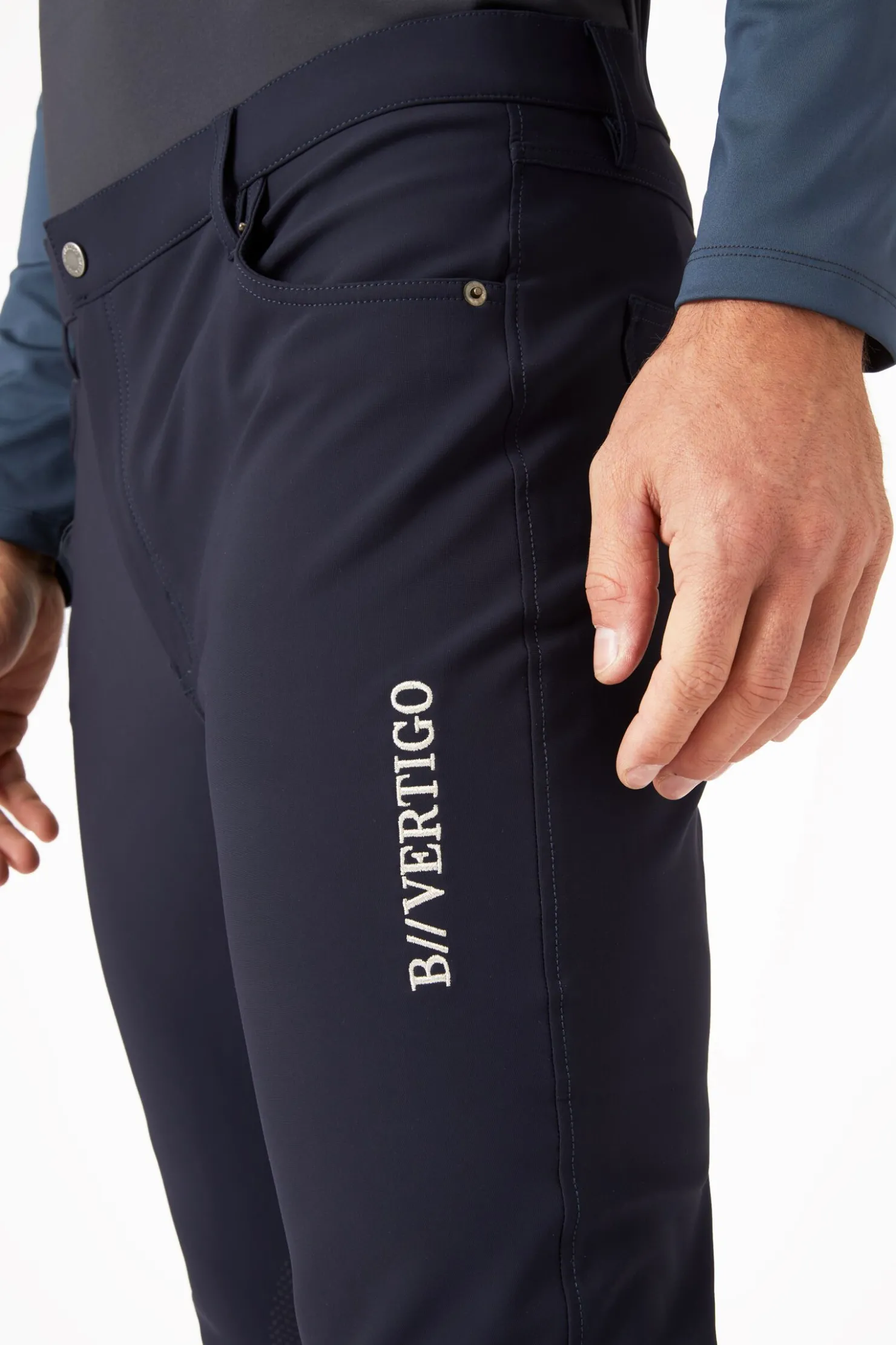 Vår B Vertigo Ethan ridebukser til herre er laget av et funksjonelt stoff, og kommer med silikon på kneforsterkingen.Totalt har du seks lommer som holder eiendelene dine trygge.Den store lommen på låret har glidelås og er romslig nok til telefonen din.Klassisk form og farger som er lette å bruke med dine beste skjorter og gensere.Kommer også som helforsterket ridebukse.