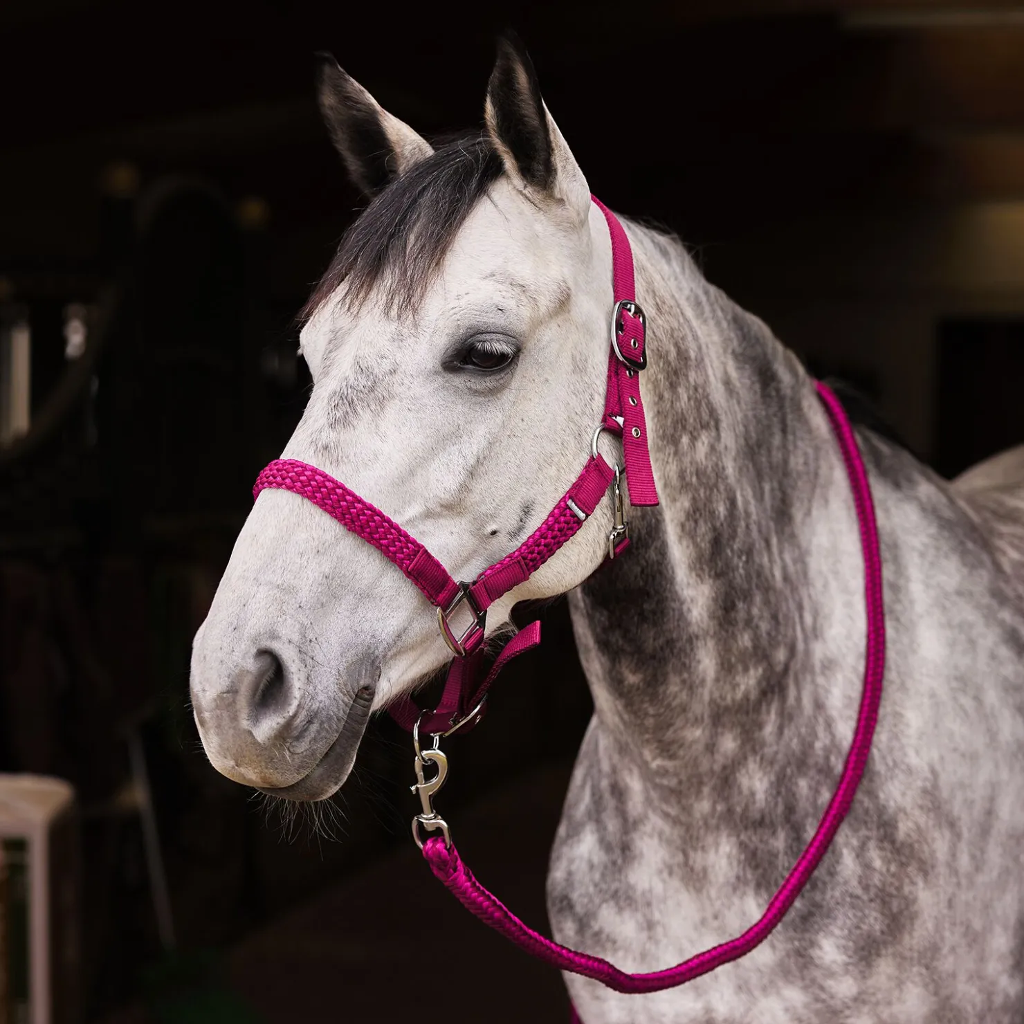 Fletting på siden og over nesa gir et fint utseende på dette settet med grime og leietau. Det flettede mønsteret matcher leietauet. Den justerbare nakkereima og justeringsmuligheten rundt nesa gjør at du får en perfekt passform.