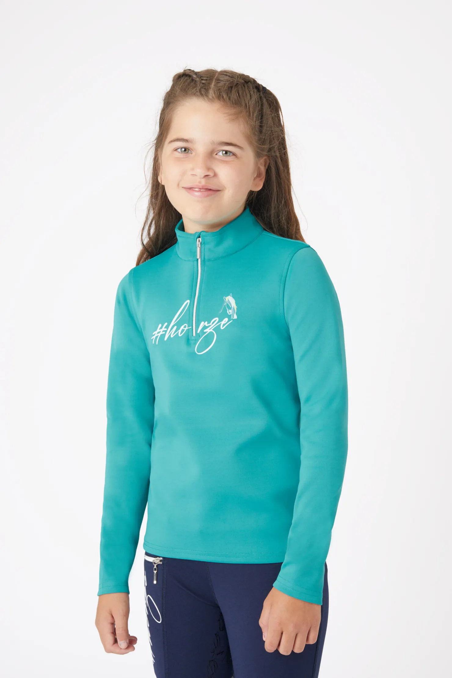 Den kommer med en myk, børstet innside som gir en behagelig følelse mot huden. Genseren kommer med en glidelåshempe så du enkelt kan ta den av og på, noe som gjør at du får hurtig temperaturregulering. På brystet er det trykket en #horze logo som gir et stilig preg. Enten det er brukt som et baselag eller for seg selv, så holder Horze Cosma funksjonell langermet genser til barn den unge rytteren komfortabel og flott gjennom hele rideøkten.