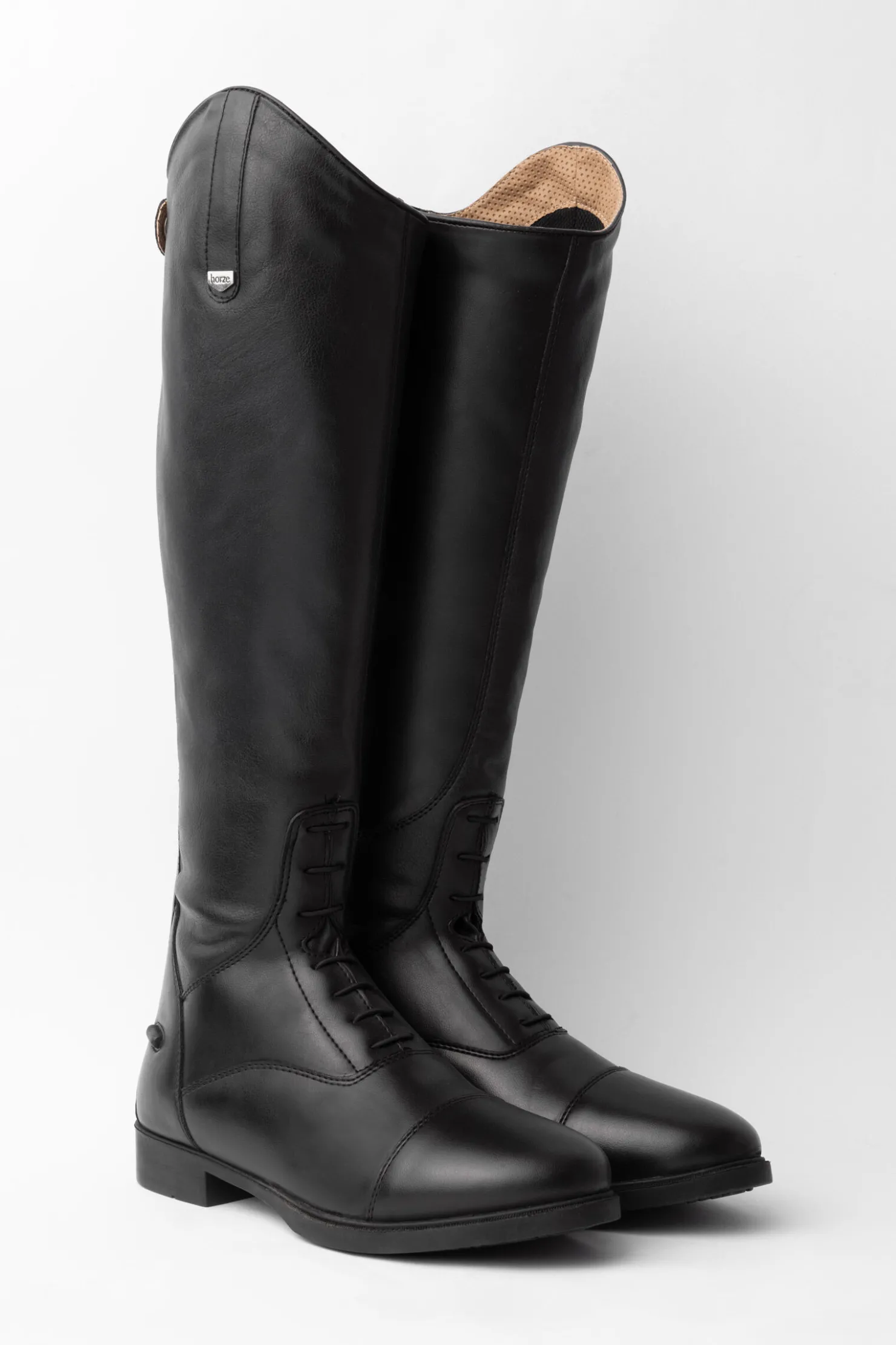 Disse høye støvlene er laget av mykt, syntetisk lær, med pustende mesh-fôr.Elastiske frontlisser gir et klassisk utseende, mens glidelås bak gjør de enkle å ta på, mens en trykknapp holder dem tette og med en god passform.En komfortabel såle gjør dem brukbare hele dagen – i salen, ute i luftegården eller i stallen.Den klassiske stilen er tidløs og matcher antrekkene dine perfekt.