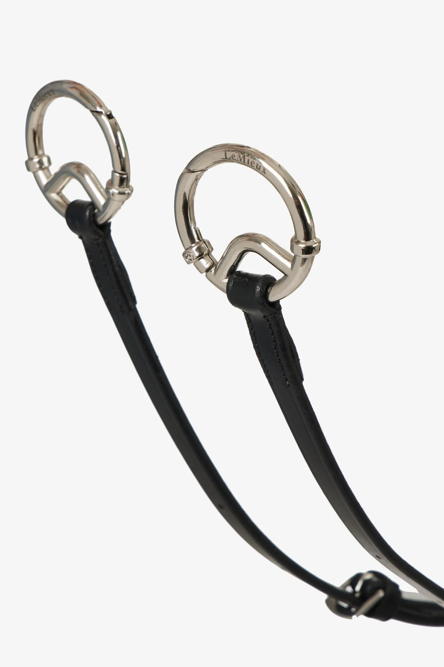 LeMieux fortøy med avtakbar martingal er en ideell løsning, med et smart utseende og praktisk funksjonalitet.Et justerbart toppstykke med myk lærpolstring ved manken festes til de elastiske festestroppene.Den polstrede delen bak festet på brystet gir komfort til hesten. Fortøyet kommer med en avtakbar, løpende martingal som festes med praktiske klips. Robuste metallspenner som er enkle å bruke.De spesialdesignede martingal-ringene klipses enkelt på og av tøylene uten at du trenger å ta dem av.Lærprodukter fra LeMieux er laget i nydelig, europeisk lær, og er designet for å fordele trykk og maksimere komfort.