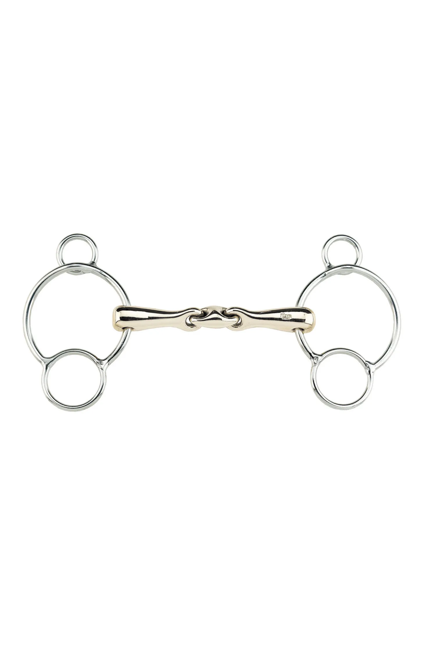 Dette bittet er også svært allsidig på samme måte som 3-ring bittet, etter som man han flere muligheter til å feste tøylene. Det er et godt valg på sensitive hester, ettersom bittet er mykere enn modell 40607, noe som gir en større grad av aksept. Vektstangtrykket har en liten forsinkelse ettersom den øvre ringen er forskjøvet sideveis. Feltrittryttere setter av og til på et hakekjede for å få et mer umiddelbart press. På den måten får hesten et begrenset press på nakken.KK ULTRA – Sammenlignet med tradisjonelle bitt, så har det tredelte KK ULTRA en midtdel – også kalt bønna – som er forkortet og vinklet forover med 45°.Kun med denne vinkelen vil midtdelen ligge pent mot tunga, noe som gir en jevn og konstant kontakt slik at hesten får tydlige signaler via tøylene.Det innovative KK ULTRA bittet drar nytte av den eksepsjonelle sentiviteten til hestens tunge, som forsterker forståelsen av signalene bittet gir. Når man tar i tøylene vil midtdelen på KK ULTRA hvile på hestens tunge uten å klemme den, og forbindelsesringene ruller på tungen. Tungens sensitivitet ivaretas, slik at klare instruksjoner kan gis.KK ULTRA bitt gir en presis kontakt mellom rytter og hest som ikke kan sammenlignes. Man ser normalt en stor forbedring så fort man bytter til et KK ULTRA bitt.Det anatomisk utformede munnstykket er svært komfortabelt for hesten, fordi rytteren kan gi mykere signaler og hestens smidige harmoni bevares.