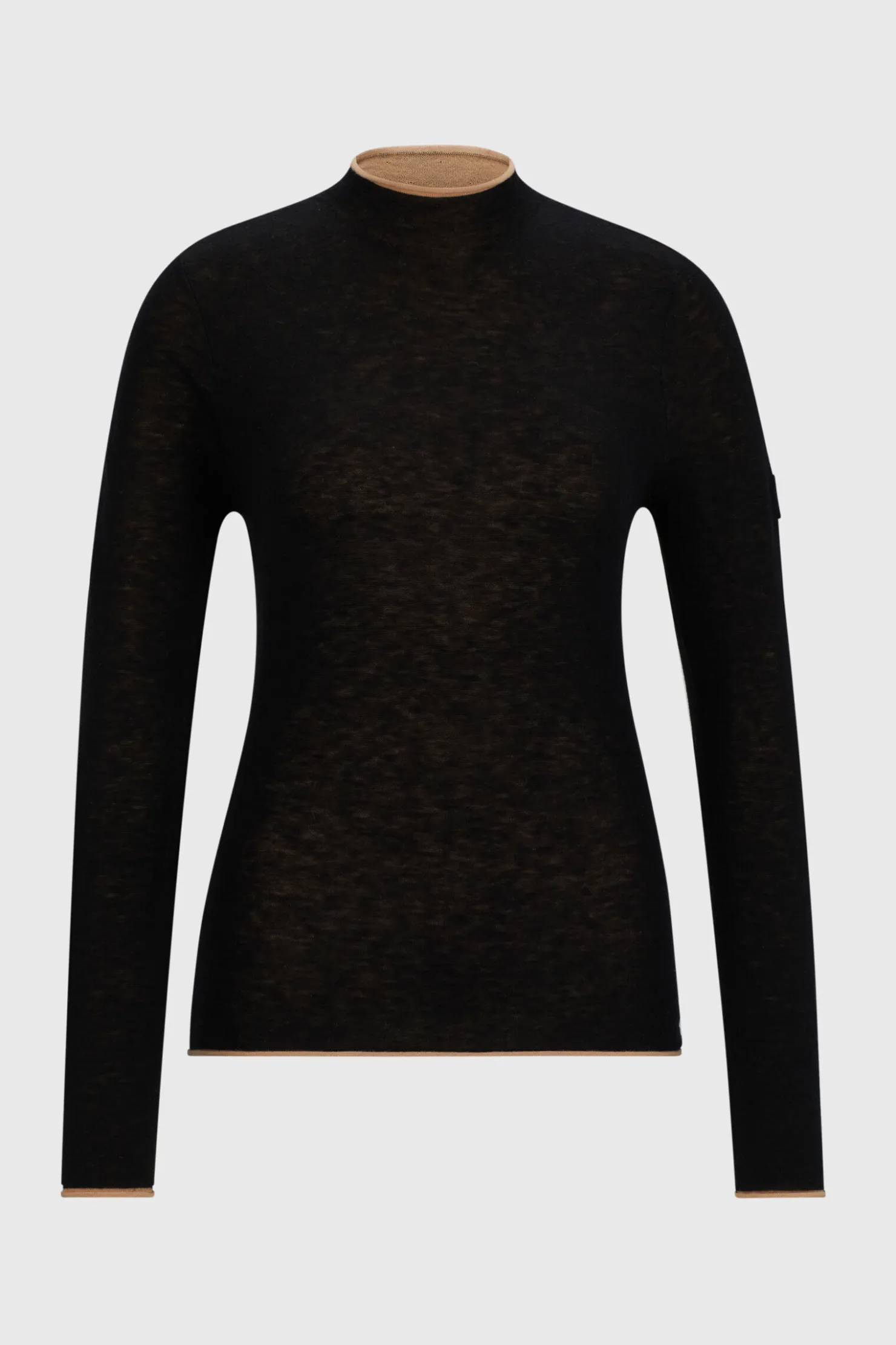 Ultrathin, supermyk høyhalset strikkegenser føles som silke mot huden. To fargekombinasjoner, innsiden er annerledes enn utsiden, med rullede kanter.