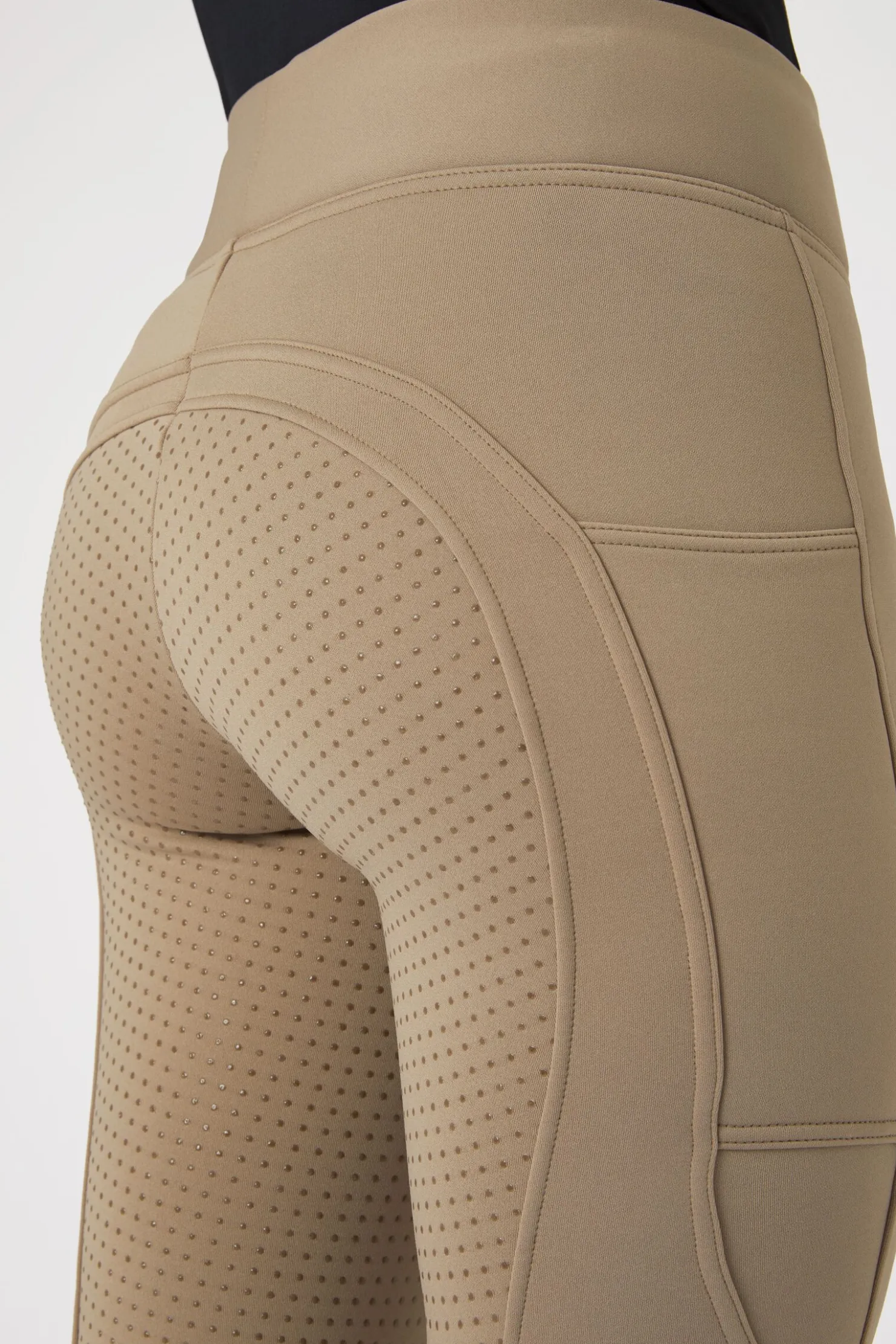 Varm innside gjør disse ridetightsene til en vinter-favoritt.Det mellomhøye livet er komfortabelt med flere lag.Mykt, pustende stoff med innside i børstet innside er ideelt for å holde på varmen slik at du får behagelige ritt på kalde vinterdager.Helforsterket med silikon slik at du holder deg trygt i salen.Lommen holder telefonen trygg.