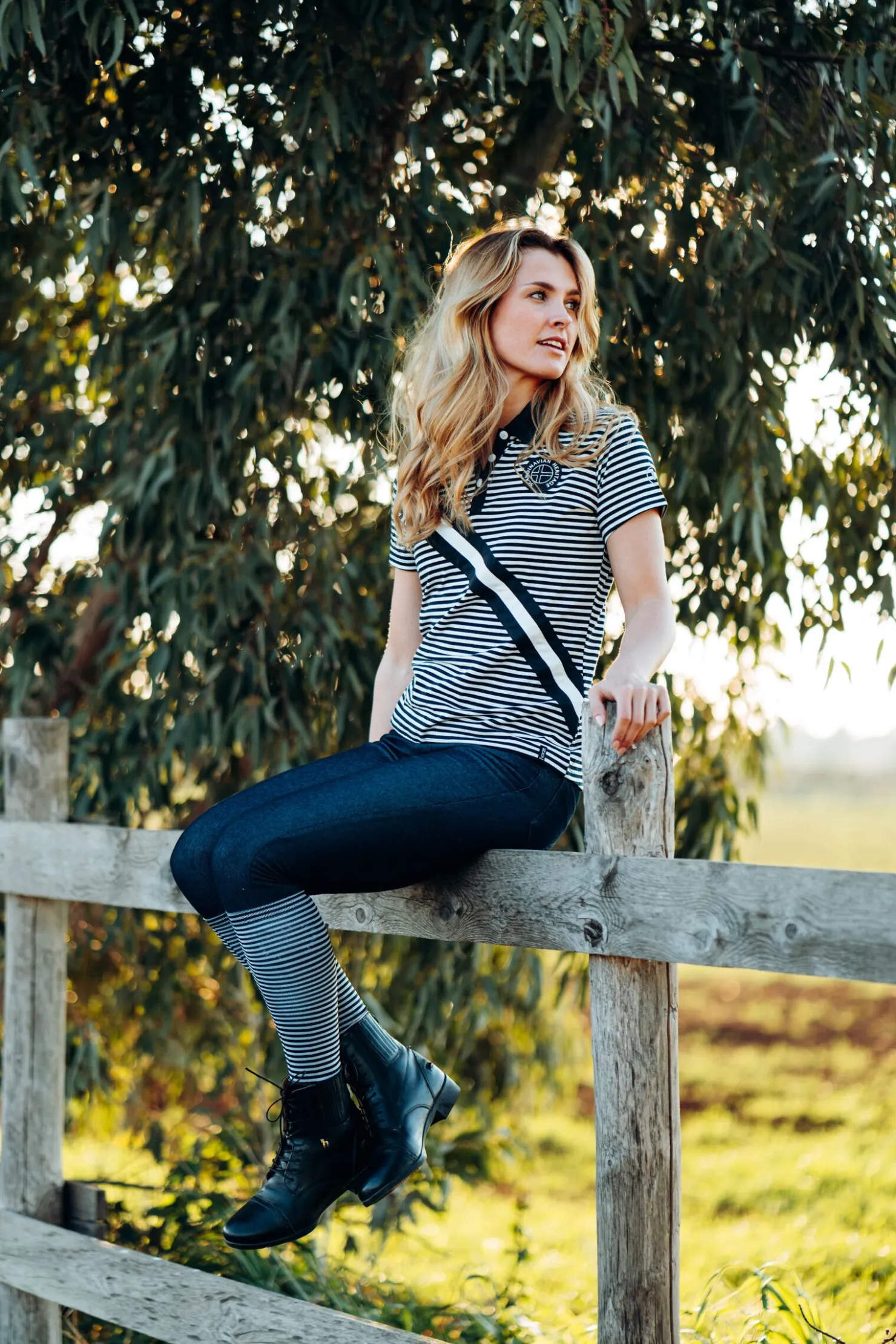 Horze Jessie t-skjorte er laget av pustende materiale som er perfekt til din daglige ridning.Det sportslige designet med krage og kontraststripe matcher din ridegarderobe.Knapper på knappestolpen gir ekstra ventilasjon ved behov.Broderiet på brystet er tidløst og ser stilig ut.Bruk den til ridning, i stallen eller på fritiden.Den kan lett brukes med ridebukser, tights eller jeans.