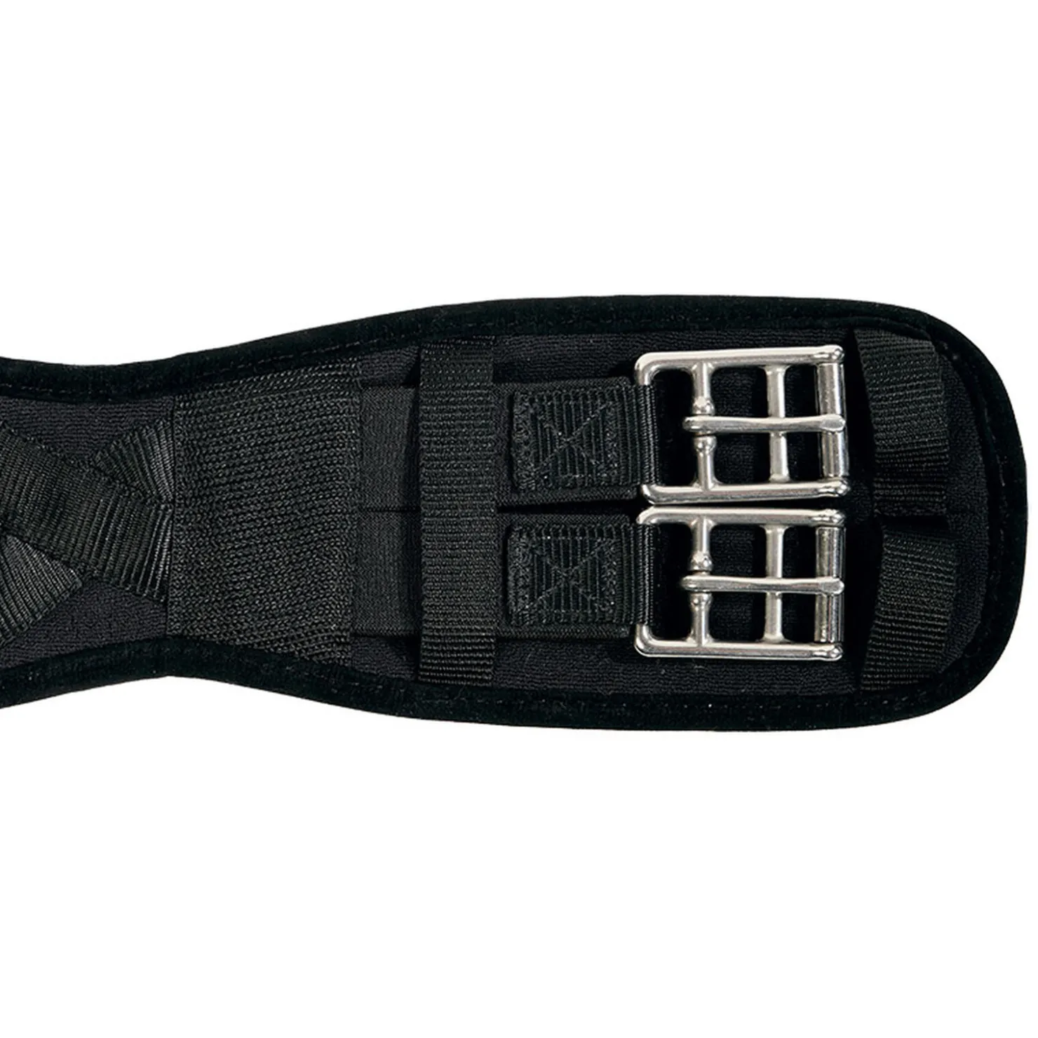 Laget av slitesterkt blandingsstoff. Et mellomrom i stoffet og kryssede reimer forseler trykket og trekkraften. Transporterer svette svært bra! Med rustfrie rullespenner (25mm indre bredde) og elastiske deler på to sider.