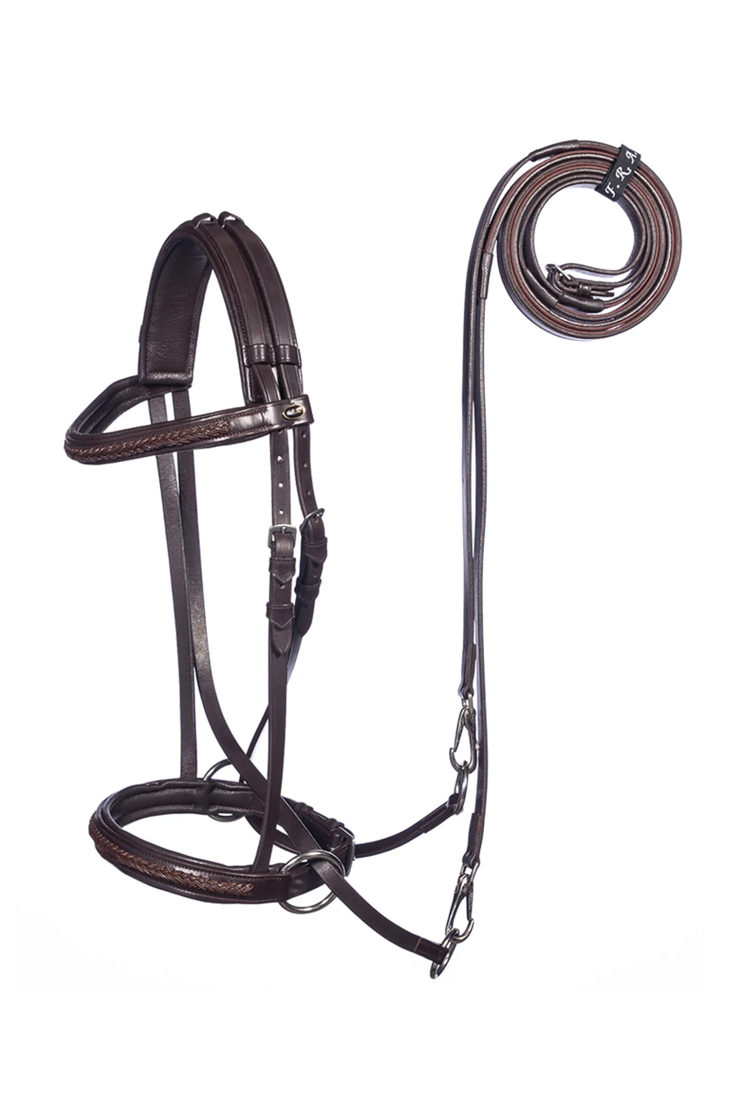 - Nesereim og pannebånd: nydelig utformet med stemplet lær