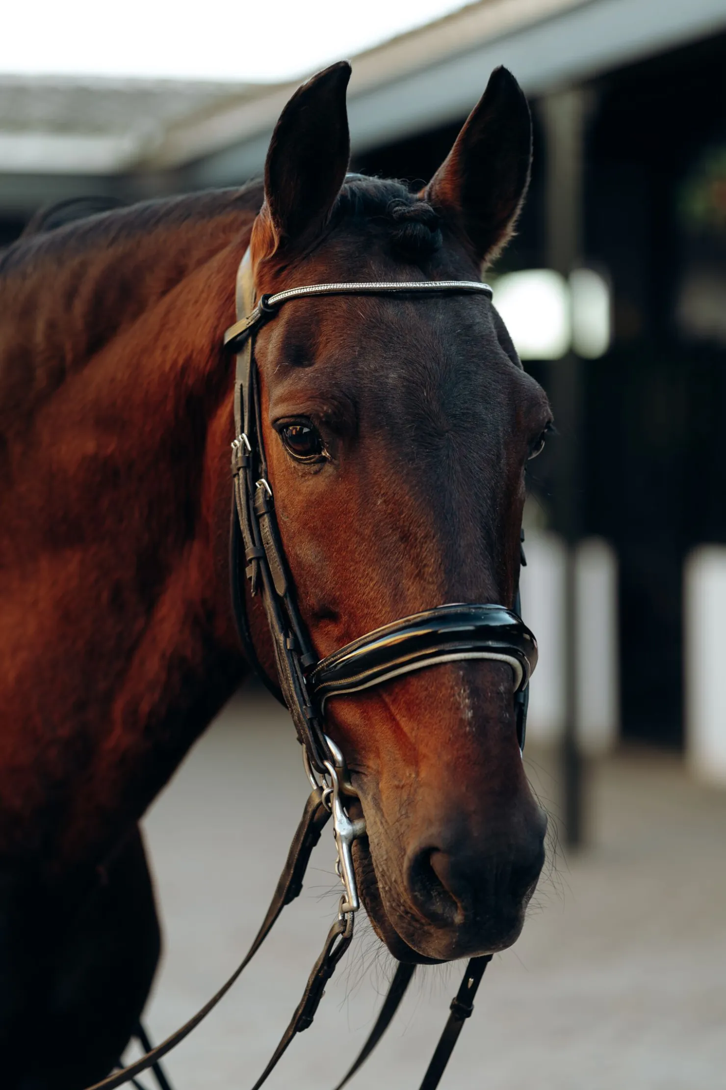 Horze Munich pannebånd er designet i en elegant buefom med en rad små krystaller og to rader med fin metallkjede.Det kan enkelt festes til ditt favoritthodelag ved to lærløkker.