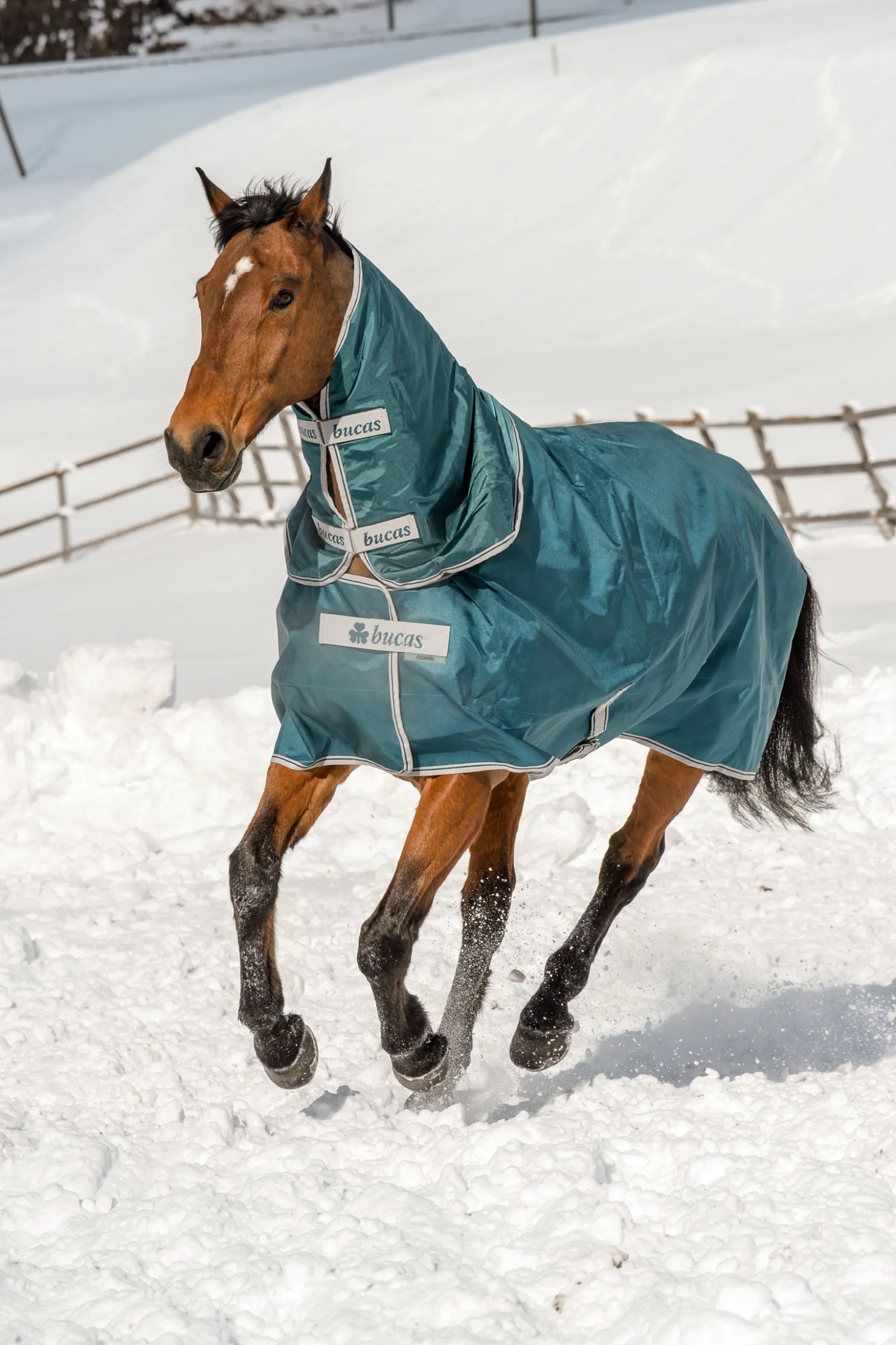 Bucas Atlantic Turnout utvider Bucas-sortimentet av slitesterke og robuste utedekken som gir beskyttelse over et bredt temperaturområde. Atlantic-serien har et ytre lag av ballistisk nylon og et silkemykt Dermo-care fôr med fukttransporterende egenskaper som holder hesten tørr og pelsen glatt og myk. Atlantic har Click窶冢 Go-frontlukking med magnetisk Snap-lock som hjelper med å holde dekkenet sikkert festet på hesten. Det sitter perfekt med skuldersnitt og et ballistisk nylon-skall med vanntett og pustende belegg.