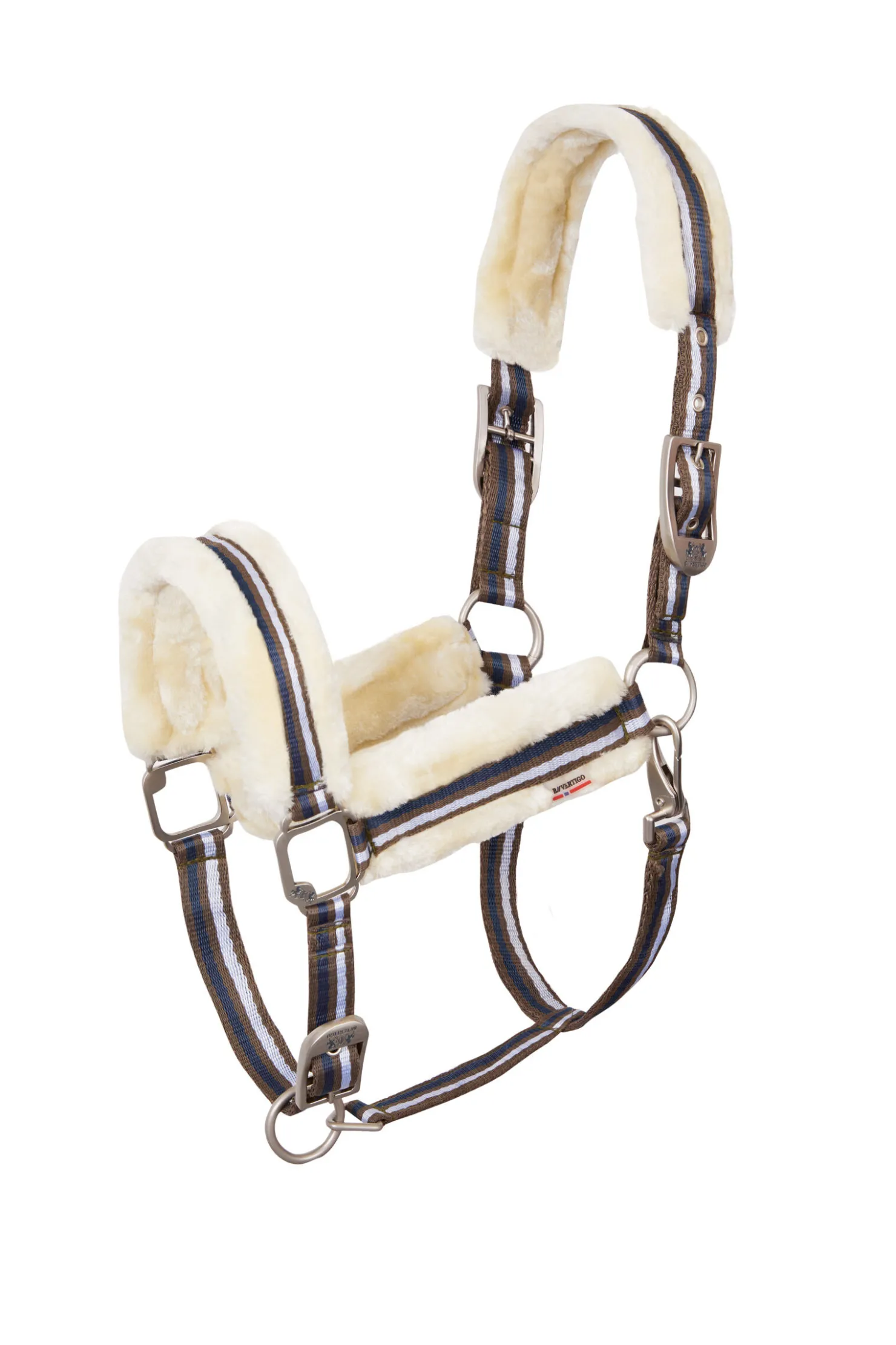Vår B Vertigo Cameron grime kommer med behagelig innside i fuskepels slik at hesten din holdes komfortabel.Justerbare spenner over nakken sikrer perfekt passform, og klipskrok på kinnet gjør at den lukkes trygt.Det sporty designet og de dempede fargene gjør at det lett matcher utstyret du allerede har, og på den måten kan grimen brukes sesong etter sesong.Bruk den gjerne med vår B Vertigo Cameron leietau (#22644) for et sportslig, luksuriøst utseende!