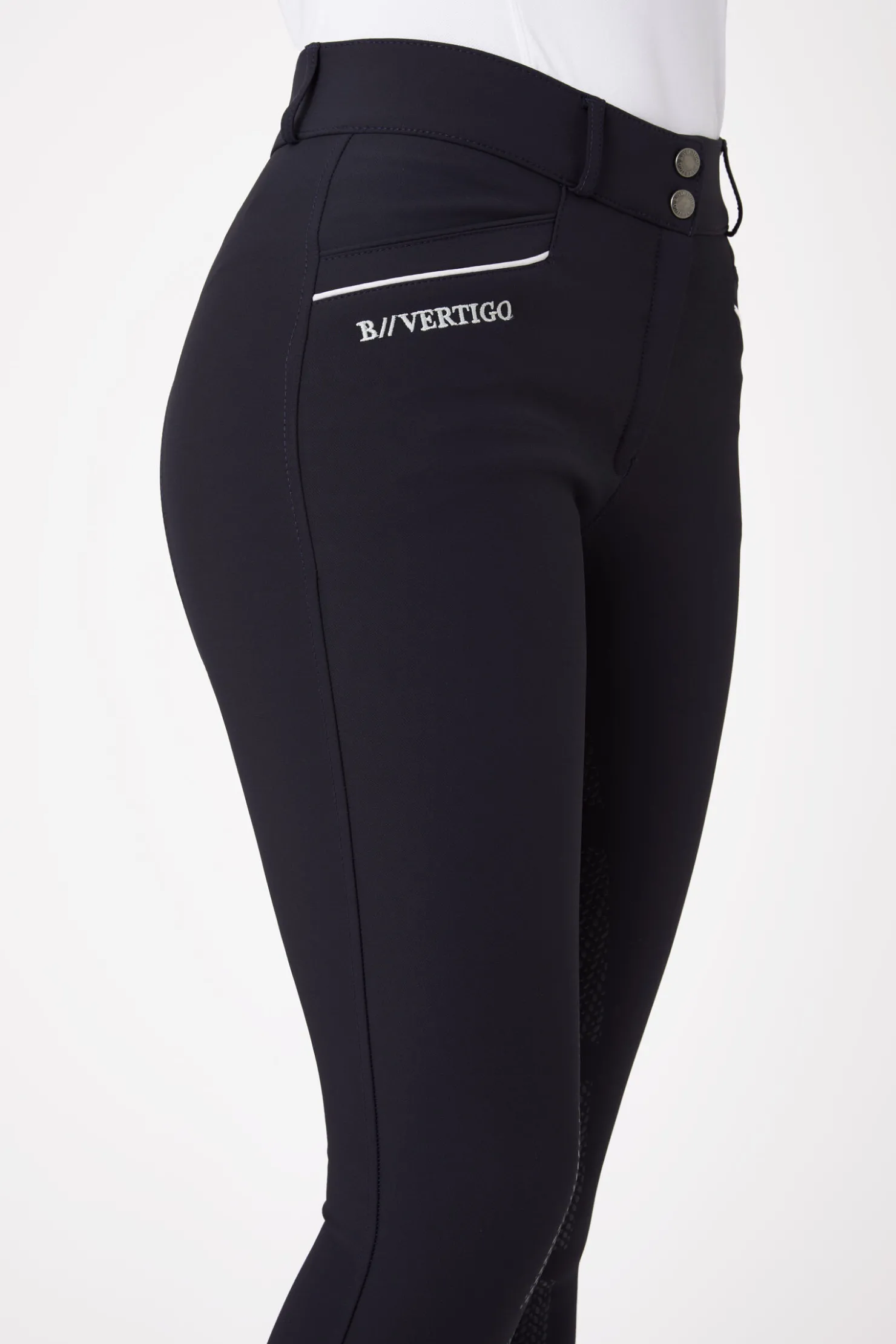 B Vertigo Patricia figurformende ridebukser med helforsterket silikon til dame har spesielle detaljer i livet foran som gjør at du får mer støtte, er flatterende for din silhuett, og har en figurformende effekt. Disse ridebuksene kommer med helforsterket silikontrykk og et høyt liv for at du skal føle deg svært trygg og få en komfortabel bruksopplevelse.