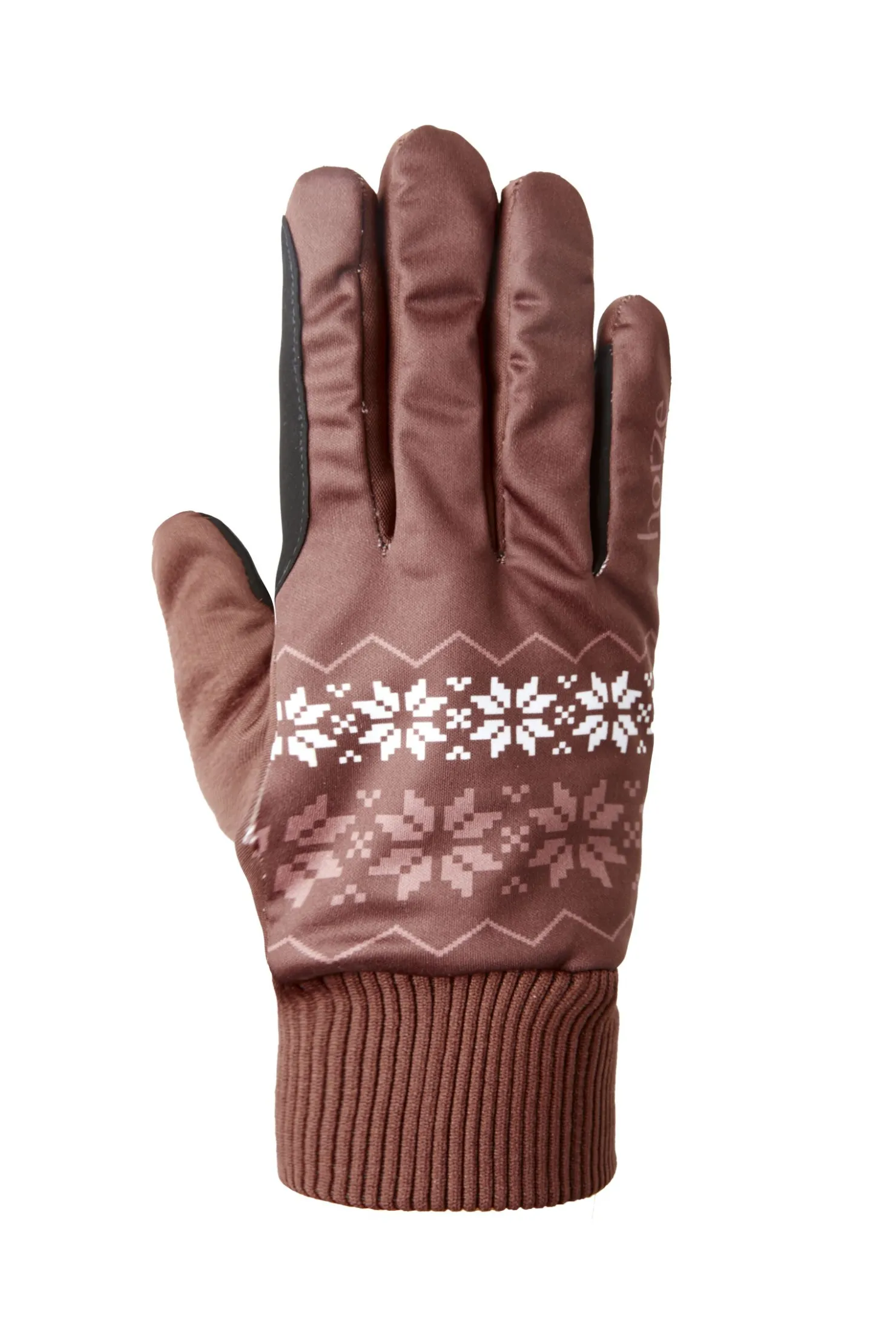 Horze Emily ridehansker er laget av vannavstøtende materiale.Mykt fôr gir ekstra varme.Pent snøfnugg-design som lett passer inn i din vintergarderobe.Bruk disse hanskene med Horze Emily lue, skjerf og skjorte for et helhetlig utseende!
