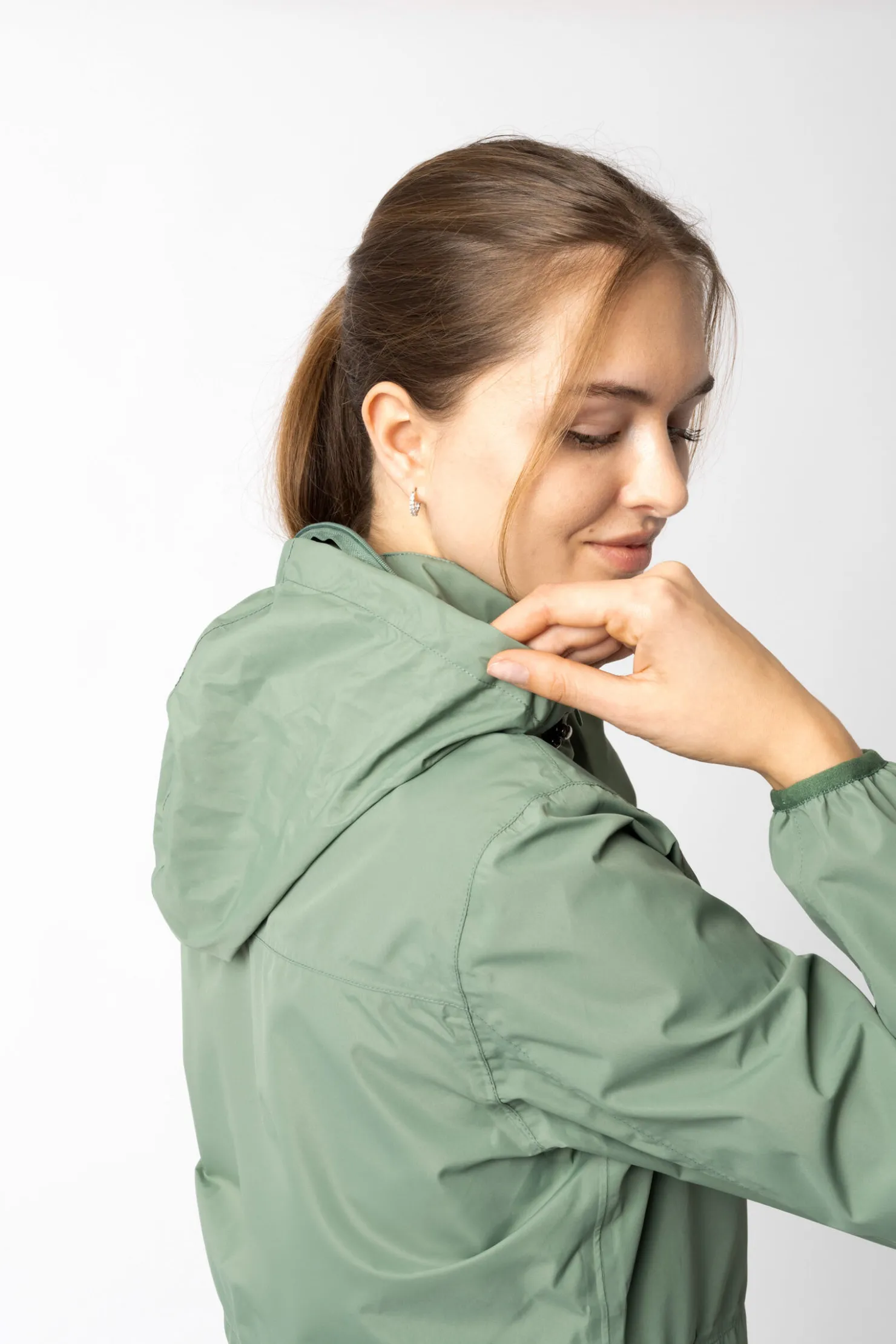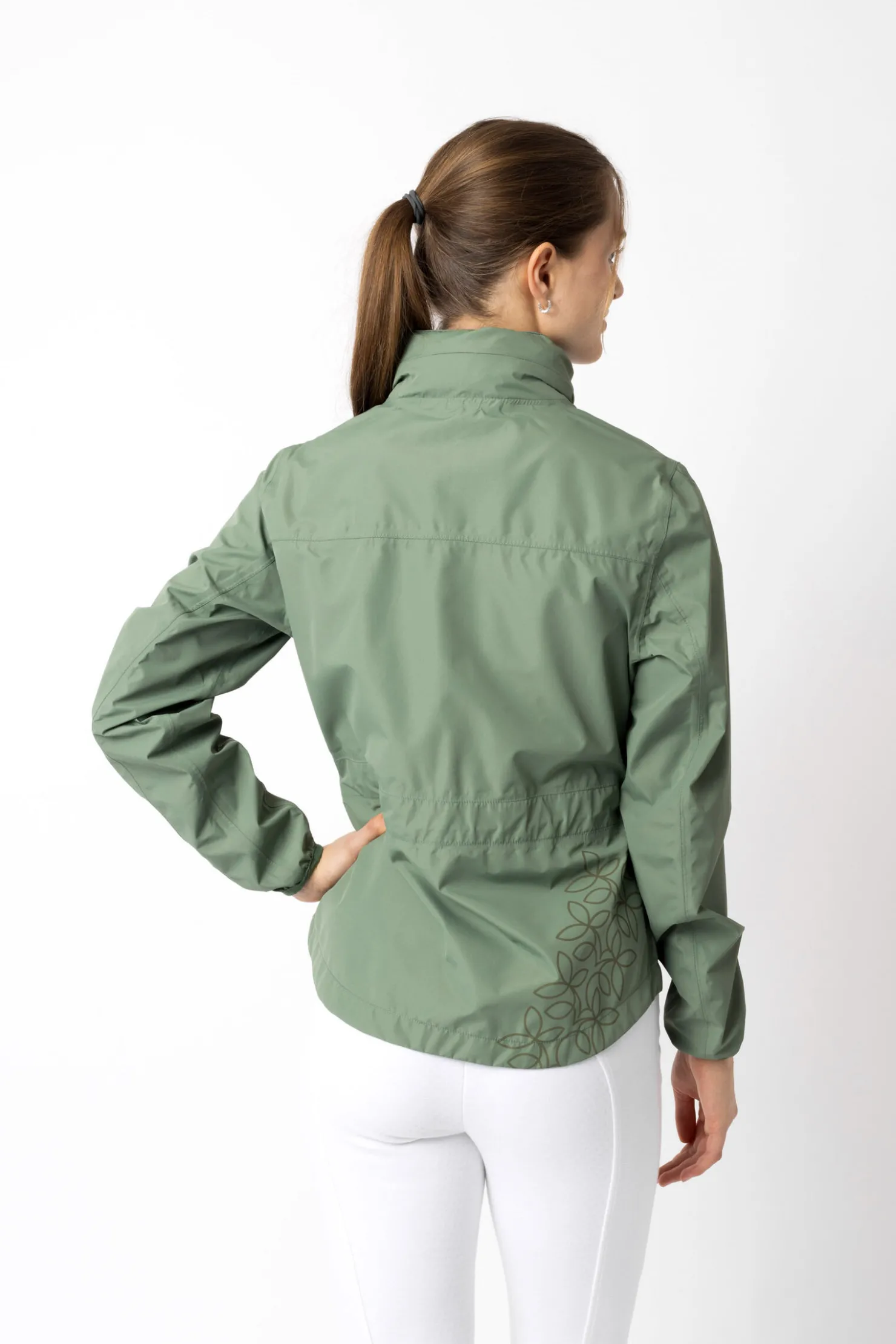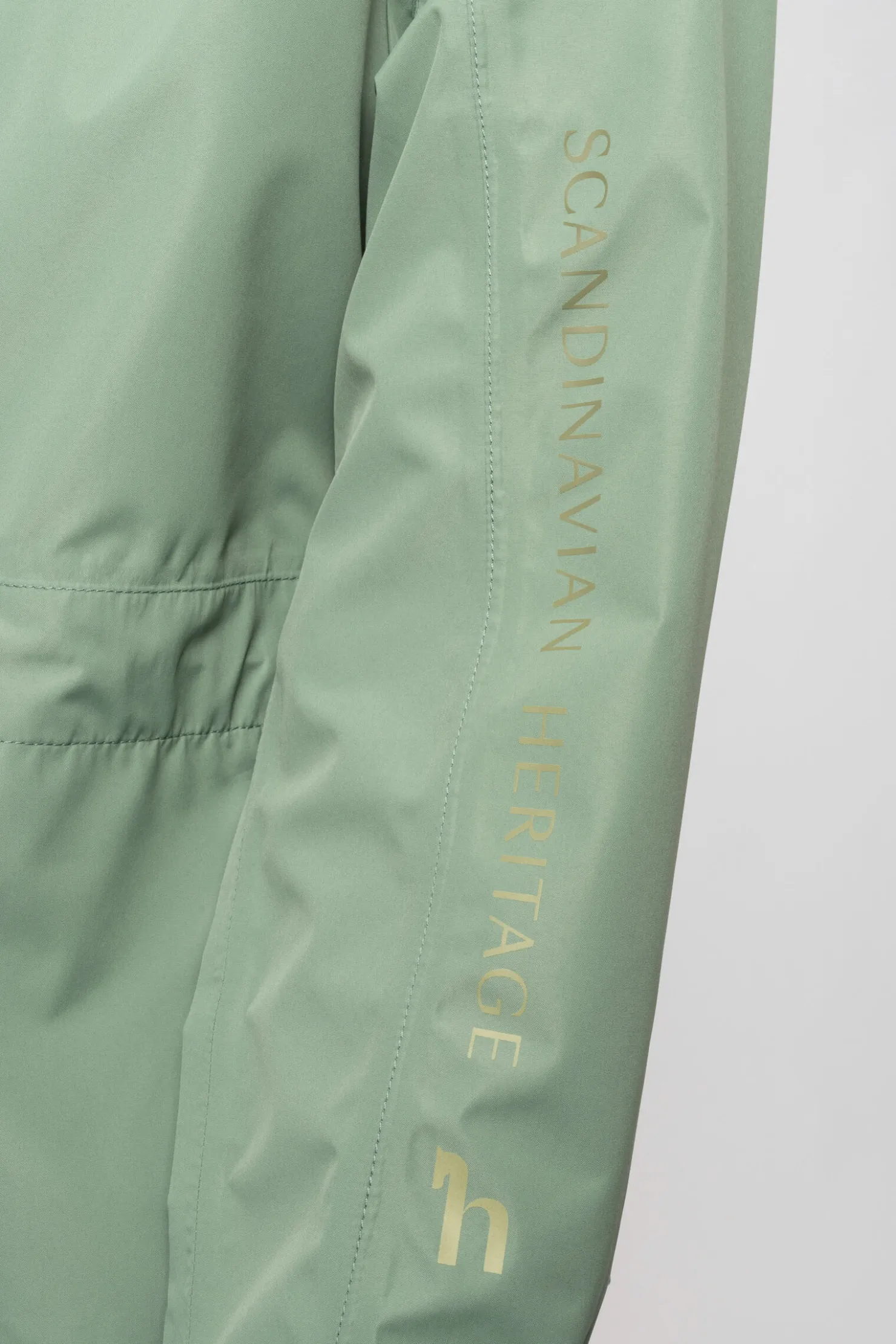 - Vanntett med teipede sømmer. Pustende. Reflekterende, ensfarget trykk på ermet og kanten bak. Justerbar i livet med elastisk snor. Glidelåslommer