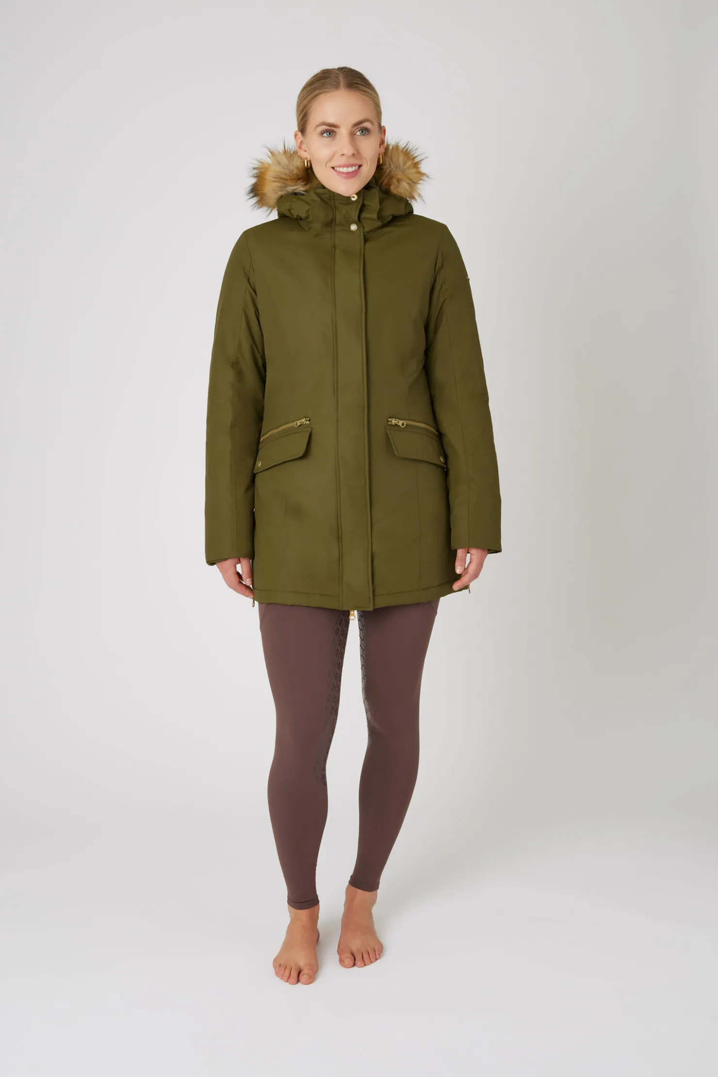 Denne jakken med sitt vannavvisende og vindtette stoff sikrer at du holder deg tørr og komfortabel. Den avtakbare hetten og pelsen gir allsidighet til hvordan du vil se ut, og gjør at du kan tilpasse stilen din. Sidesplitt med glidelås gir god bevegelsesfrihet når du er i salen. Med sitt funksjonelle design og konstruksjon i høy kvalitet er Horze Mikaela parkas det perfekte valget når du vil være stilig og samtidig beskyttet mot været.