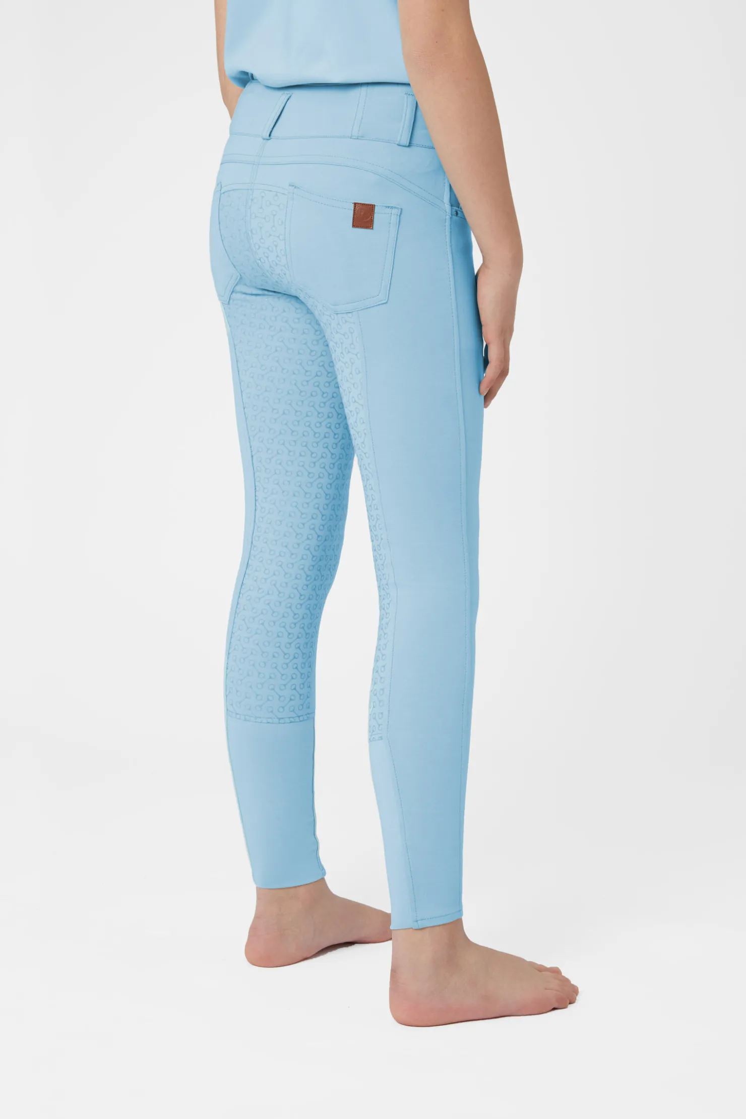 Vår Tara ridebukse er en favoritt blant mange ryttere.Disse ridebuksene kommer med et superhøyt liv som holder dem på plass.Den nye miksen av stoff er myk og komfortabel, med akkurat nok stretch.Baklommer gir en bukse-lik effekt, og to knapper fester den trygt.Helforsterkingen er laget av sterk silikon som vil holde den unge rytteren i salen.