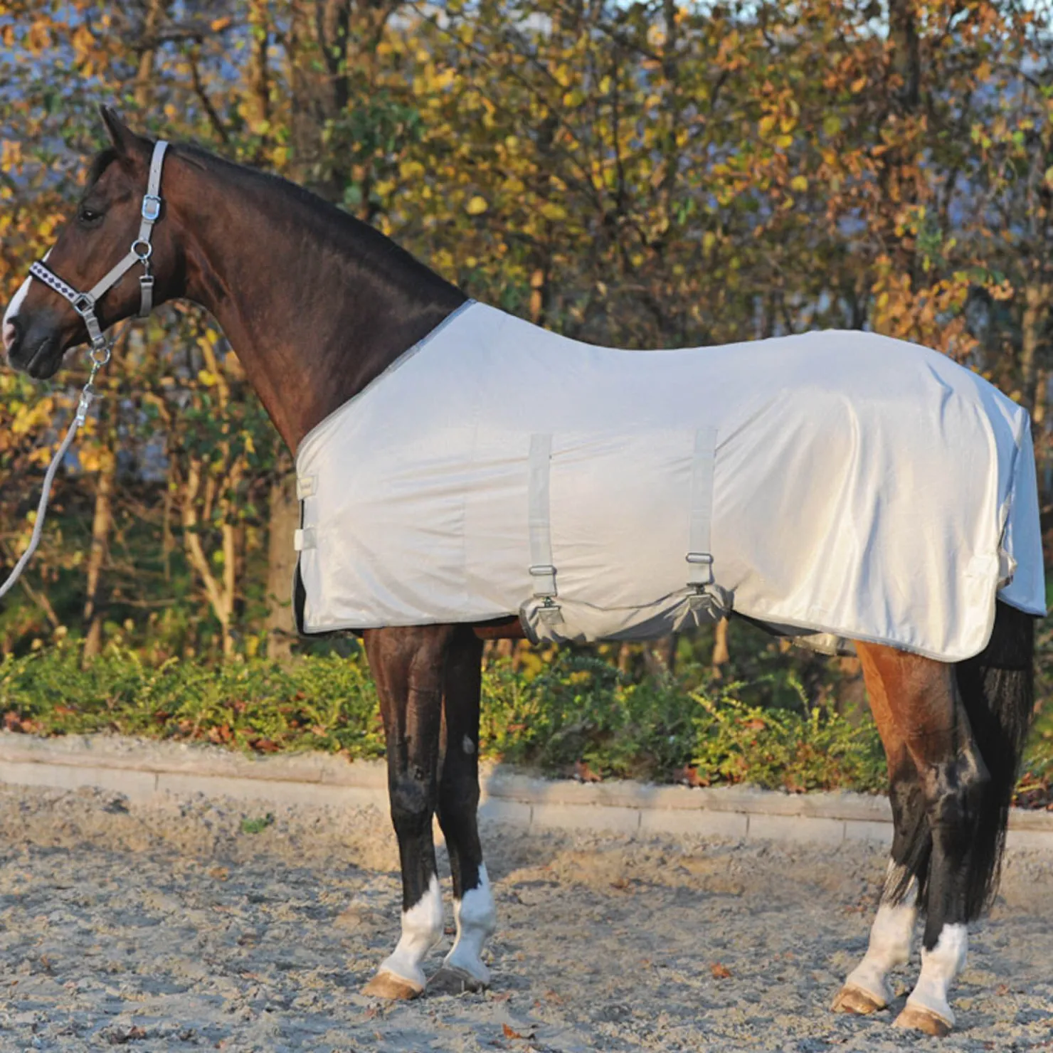 Svært funksjonelt og robust fluedekken laget av tett polyester-mesh, som er pustende og gir optimal beskyttelse mot fluer og insekter.Med dobbel svivelkrok på brystet, halestropp, avtakbar mageplate og hals.Ideell for beite eller paddock.