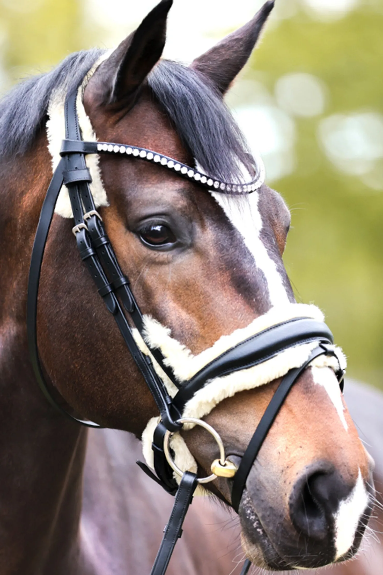 - Removable lambskin with velcro at head piece and noseband, elongated at the sides