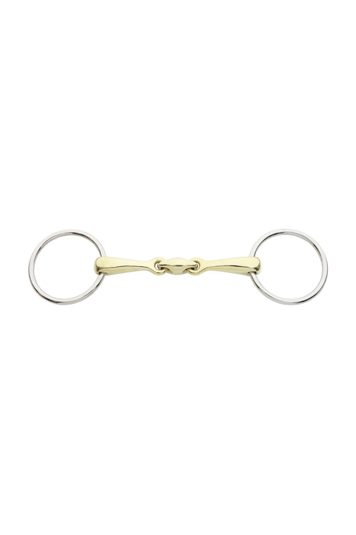 Ring-size: 6,5 cmThickness: 12 mmMouthpiece: double jointed, lock upMaterial: 70 % brass, 30 % copperWeight: 0,3 kg.