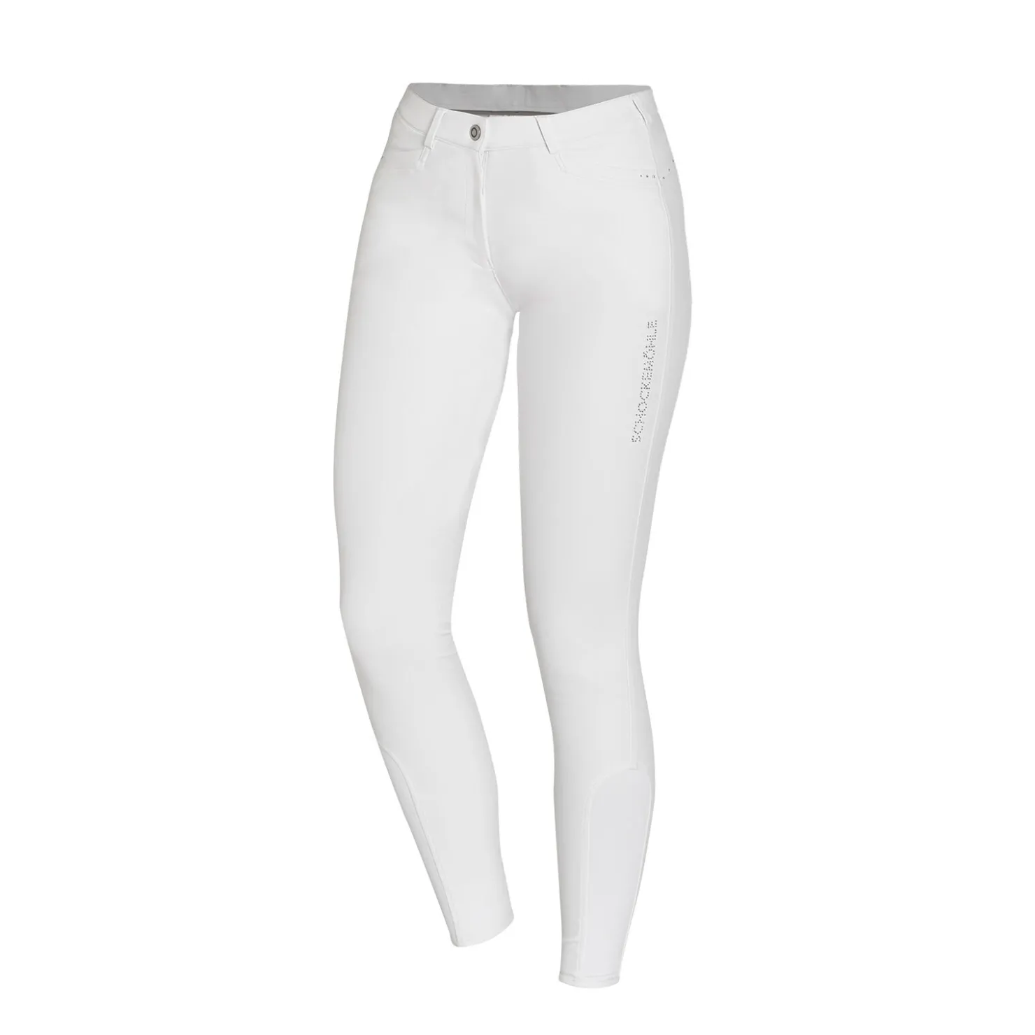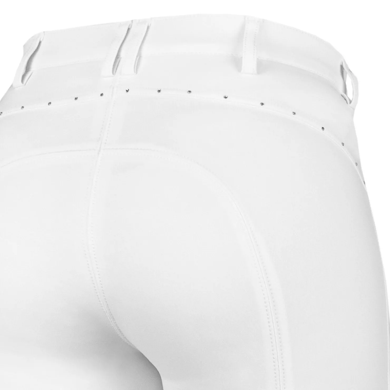 Lette, pustende, fleksible og formfaste: Disse ridebuksene imponerer med den høyeste funksjonaliteten.Det elastiske stoffet er fukttransporterende og gir UV-beskyttelse.Det kneforsterkede setet gir et godt grep i salen.Dekorative pyntesteiner på baksømmen og på logoen på venstre bein gir glitter til disse stilige ridebuksene.