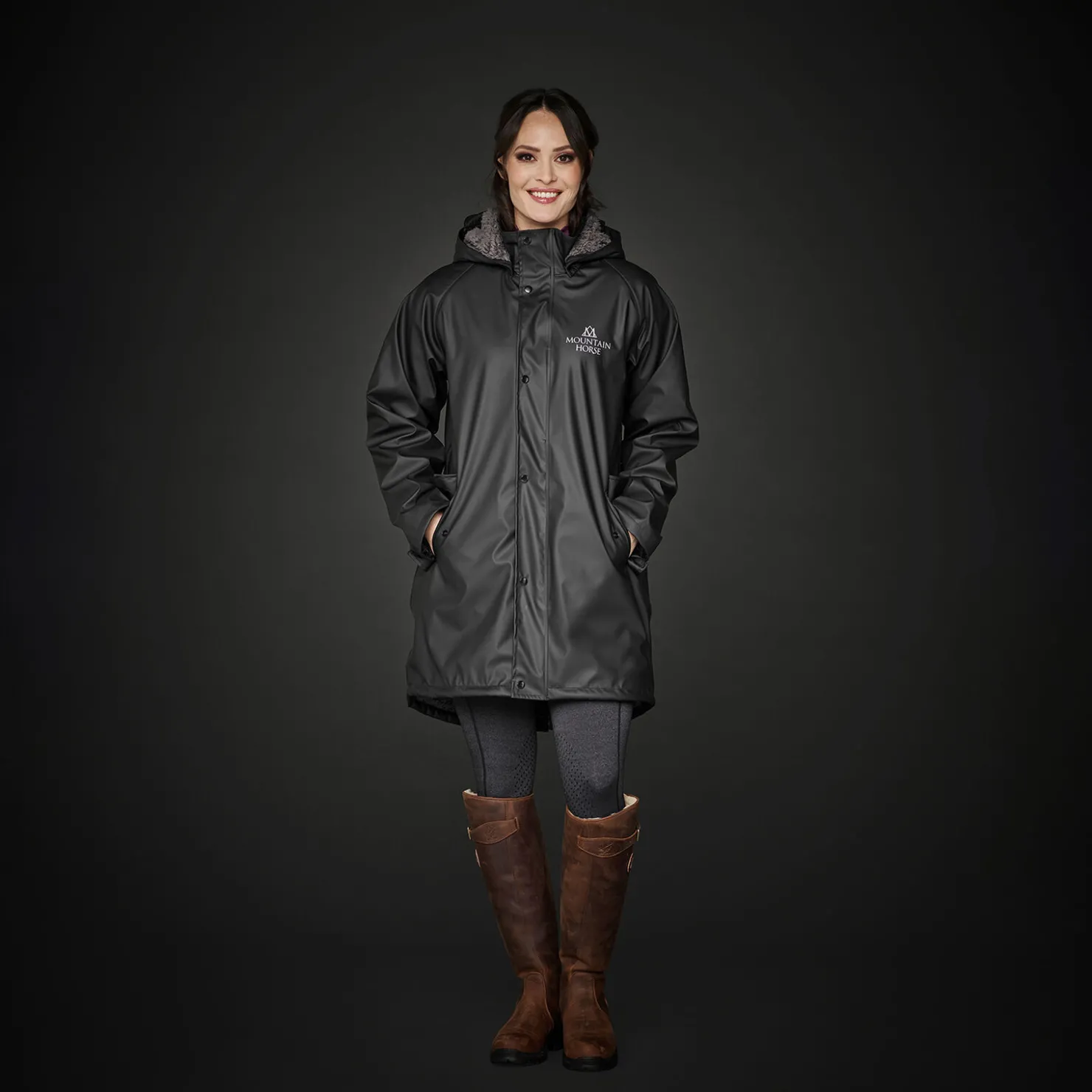 Denne helt vanntette regnfrakken med sveisede sømmer vil holde deg tørr selv i det kraftigste regnværet.Fôret med mykt, behagelig pile-stoff som er komfortabelt å bruke.To store frontlommer som er perfekte for å oppbevare hestegodbiter eller telefonen din.Ridesplitten bak kombinert med toveis glidelås gjør denne frakken perfekt til ridning.Reflekterende detaljer gir nok synlighet i mørket.