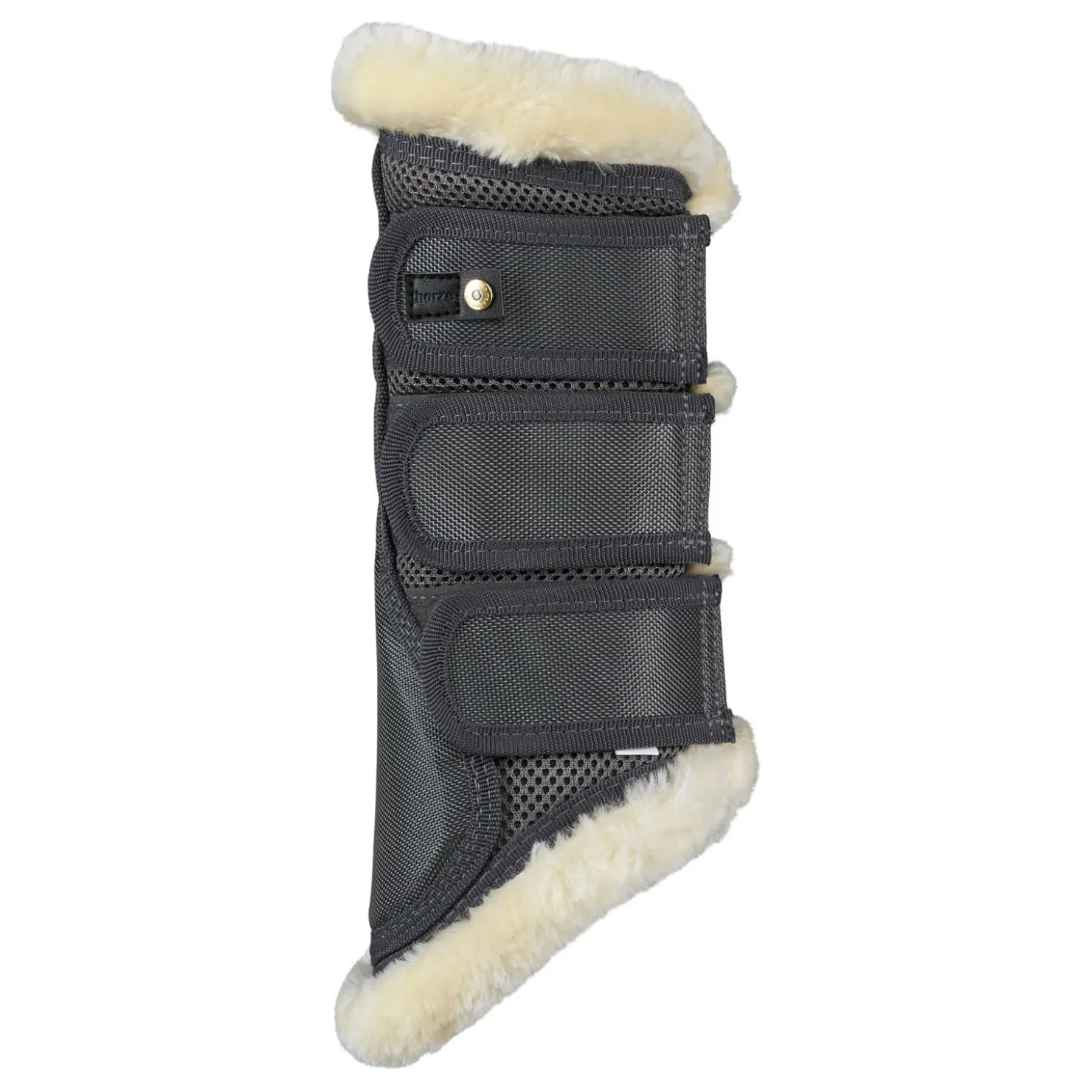 Horze Lincoln stryksokker er fôret med funksjonell neopren og kant i myk fuskepels.Sterke borrelåsfester holder dem på plass.Bruk dem med Lincoln sjabrak (#17396 eller #17346) for et komplett utseende.