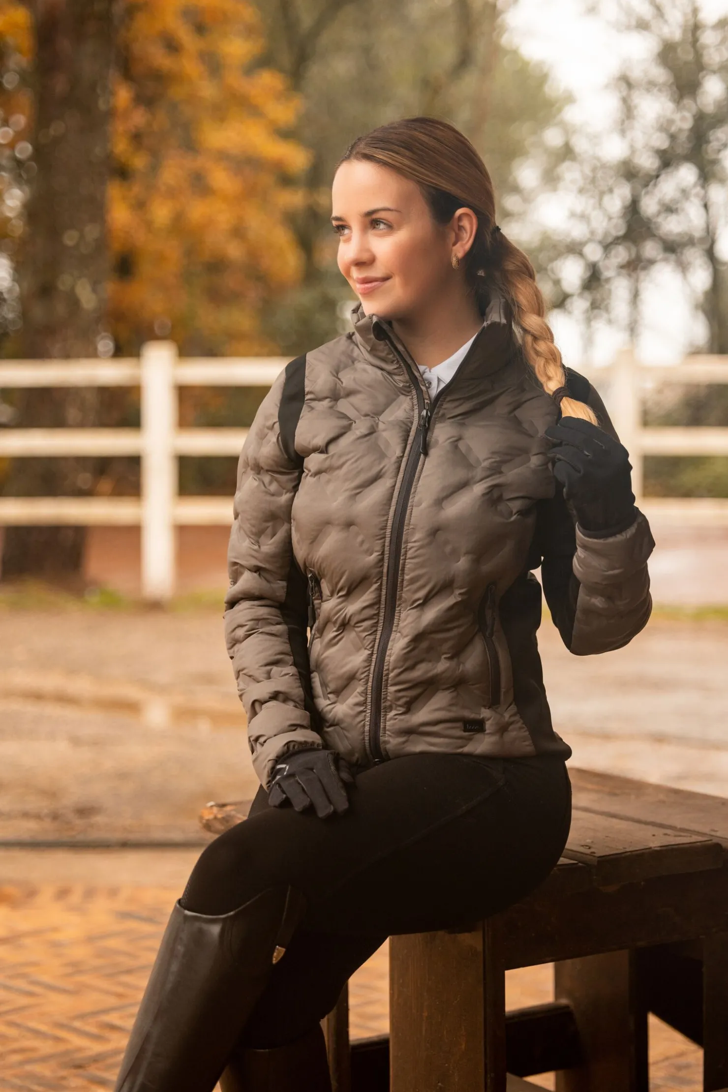 Horze Shelly lett jakke har lett vattering kombinert med elastiske sidepaneler for å gi utmerket komfort.Denne jakken er perfekt å bruke med jeans for et hverdagslig utseende, eller med dine favorittbukser for et pent høst-antrekk.Stoffet er vannavvisende og pustende, og lengden er perfekt i salen.