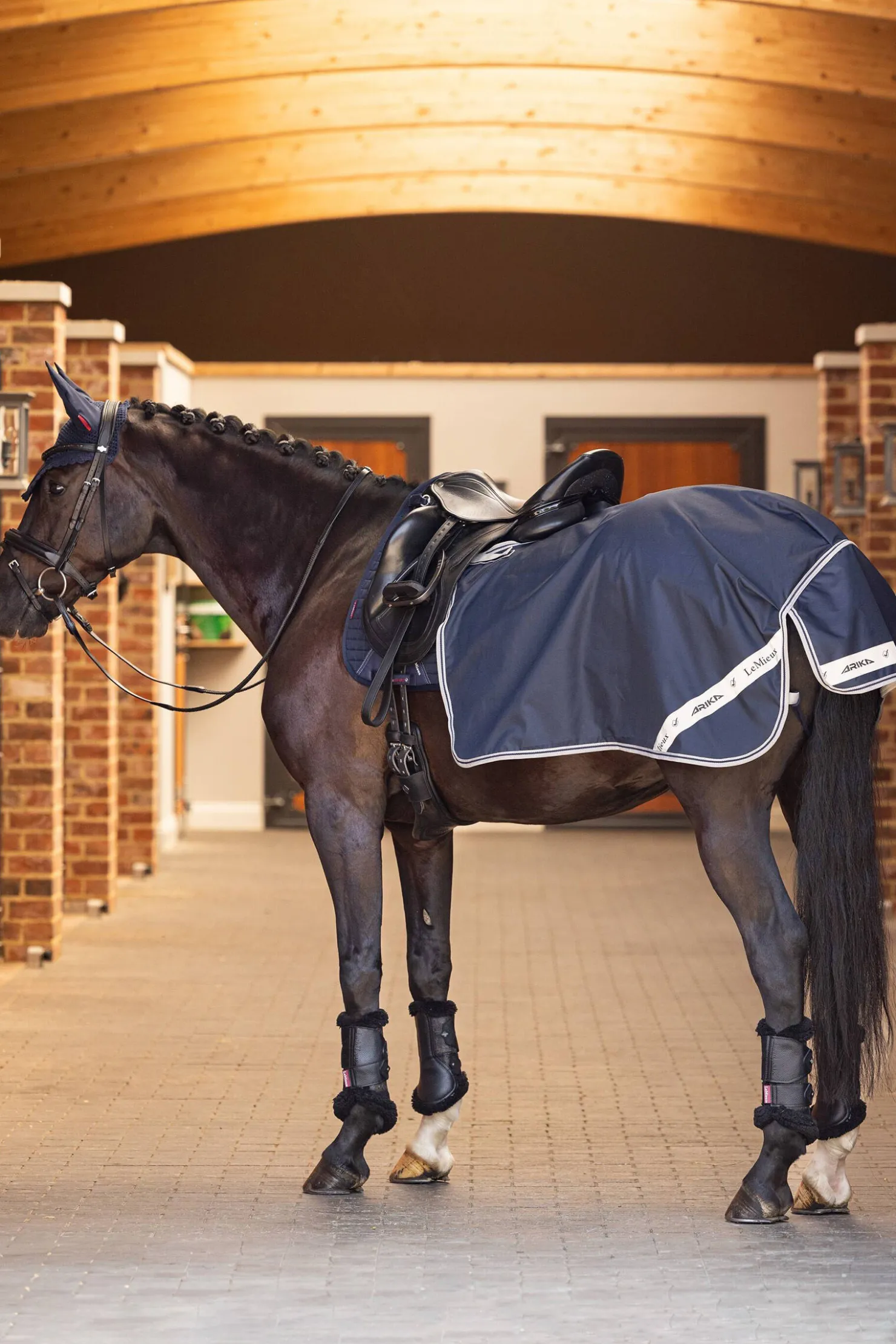 LeMieux Vanntett trekk til trening har en koselig fleeceforing og reflekterende striper, noe som gjør det til den perfekte beskyttelsen for hesten din mot elementene under oppvarming eller hacking.