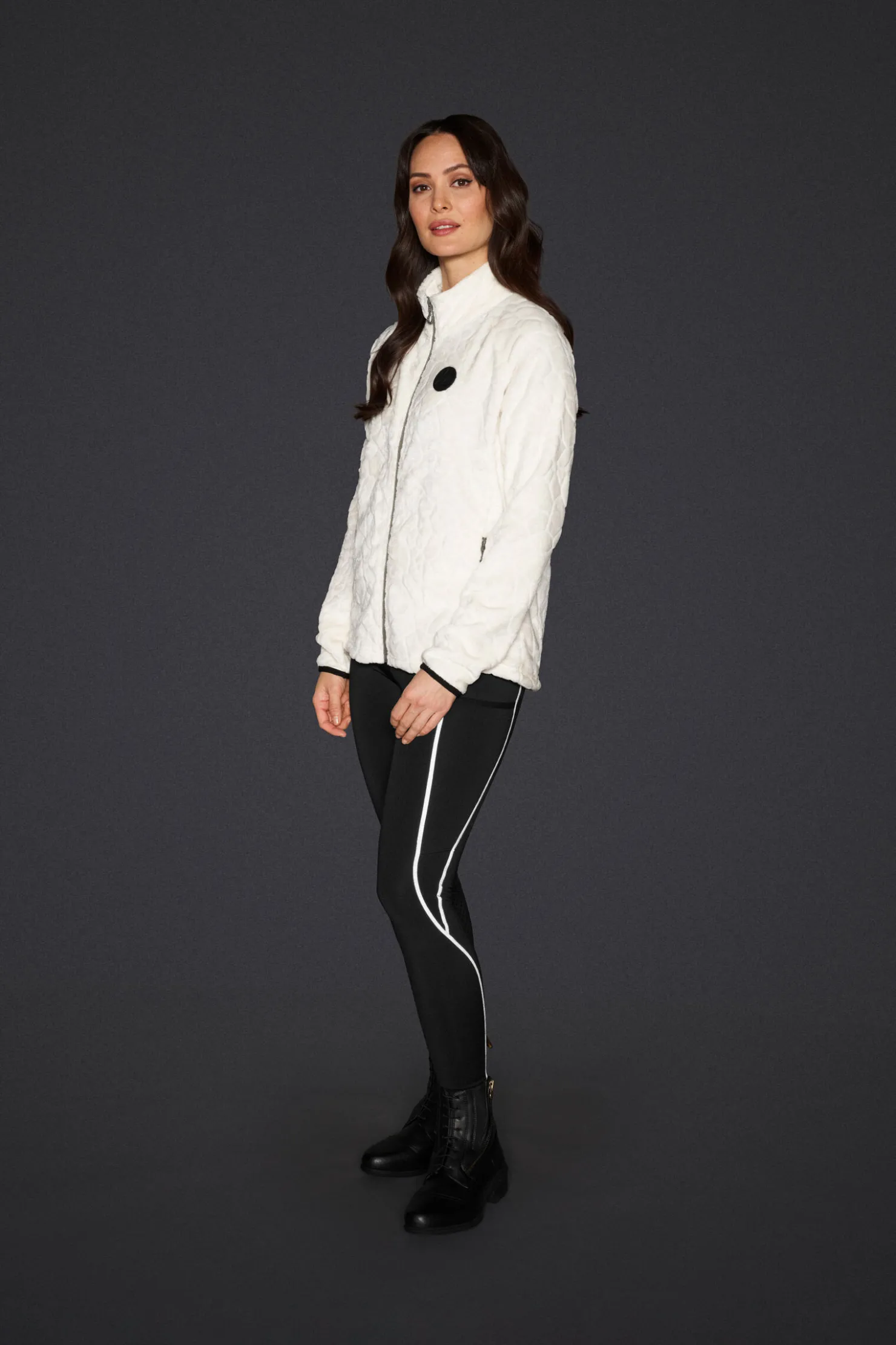 Soft pile fleece with a super comfortable and soft velvety surface, Cosy high collar and front pockets with zipper closure.