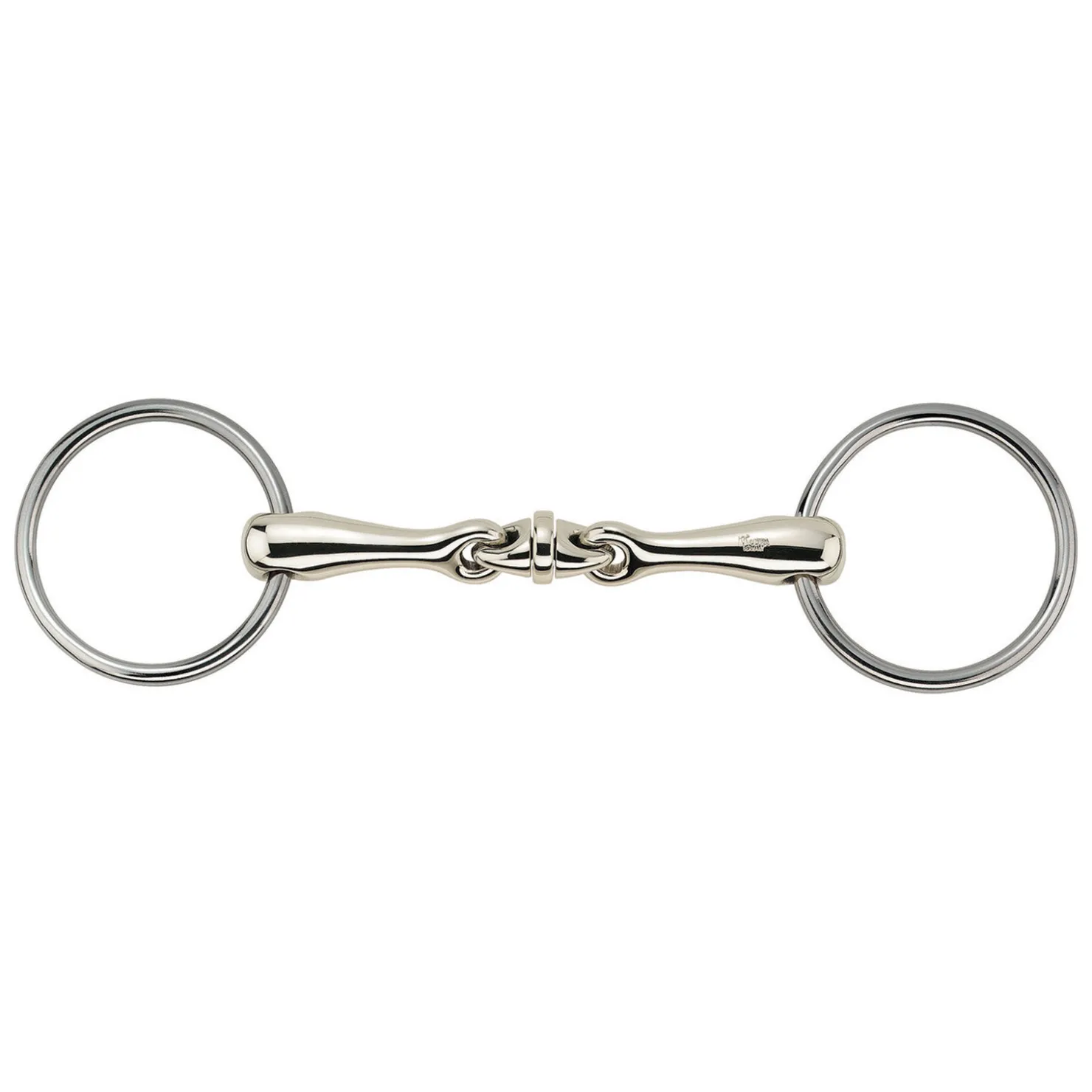 Munndel: Tredelt.Materiale: Sensogan med stenger av rustfritt stål.Bittykkelse: 16 mm.Diameter på ring: 70 mm.Ringtype: Løse ringer.