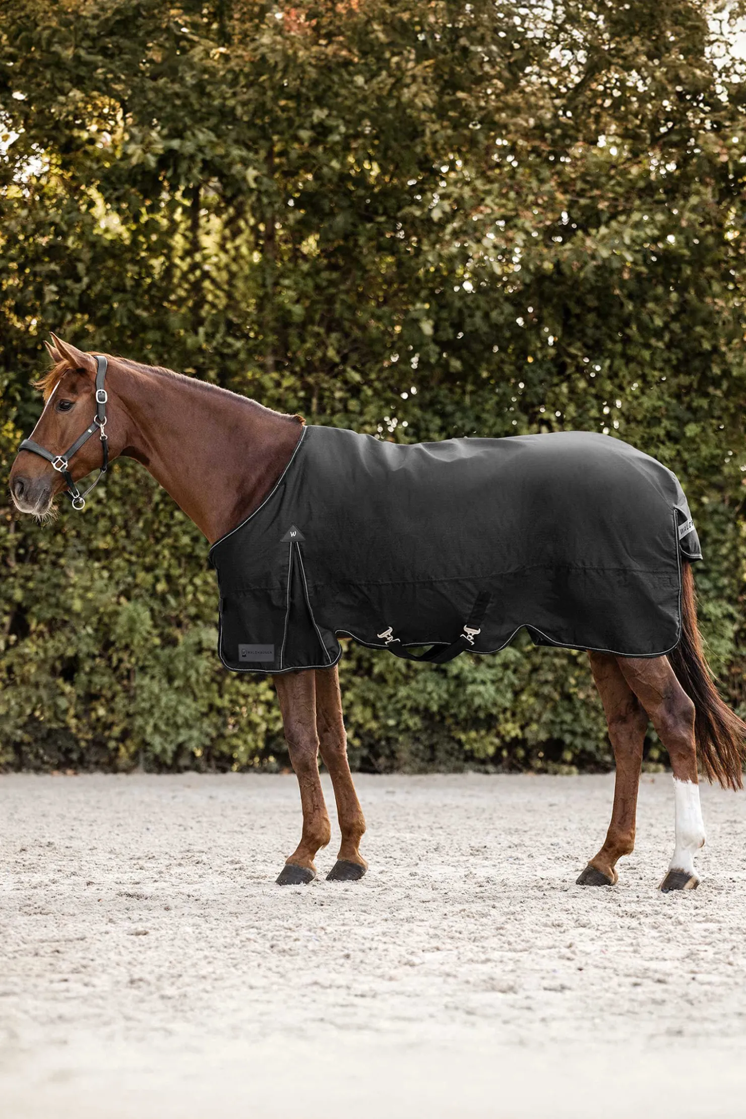 Med Waldhausen Arctic utedekken kan du være trygg på at hesten din er optimalt beskyttet, selv under utfordrende forhold. Det antibakterielle innerforet sikrer maksimal komfort. De doble T-frontlukningene gir en sikker passform og forhindrer at dekkenet sklir. Kantbåndet med reflekterende detaljer forbedrer synligheten i dårlig lys. Den romslige bevegelsesfolden gir ubegrenset bevegelsesfrihet, mens kryssgjordene gir ekstra stabilitet. Yttermaterialet på 600 denier gir en slitesterk barriere mot vind og vær.Stay Clean Inlay: Si farvel til hestehår på dekken som kun er prøvd én gang. Waldhausens Stay Clean Inlay er en praktisk og innovativ løsning for å prøve dekken på hester hygienisk og enkelt, uten at de blir skitne eller fulle av hår. Innlegget er direkte integrert i de nye Waldhausen-utedekkene og er festet til innsiden av dekkenet. Dette forhindrer direkte kontakt mellom hestens rygg og dekkenet. Resultatet er at dekkenet forblir rent, selv om det bare brukes én gang til prøving. Det er viktig å merke seg at innlegget ikke er beregnet for permanent bruk, men kun til kortvarige prøvinger. Stay Clean Inlay kan enkelt fjernes ved forsiktig å dra det av.