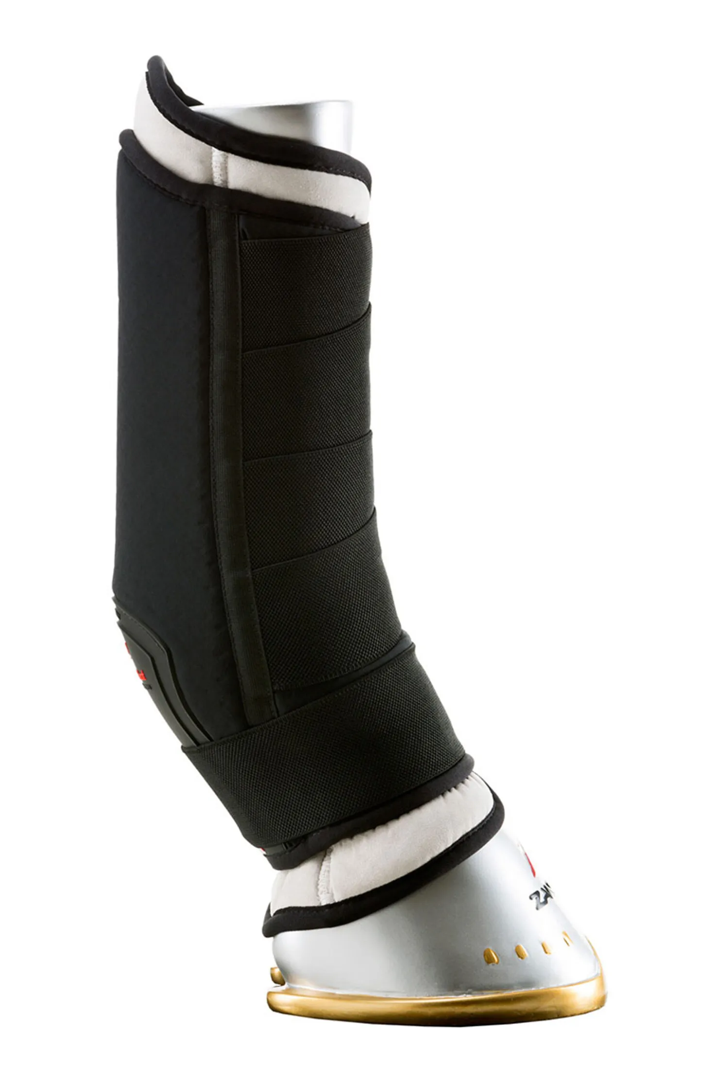 SUPPORT beleggene er utviklet for å gi støtte til leddbånd og sener. Brukes under transport av hesten og for å dempe en typisk hevelse etter trening. Produsert i italia og utstyrt med et utskiftbart lag med COOLMAX® (et unikt tekstil som transporterer fuktighet mot utsiden og holder huden tørr). På utsiden, ved kodeleddet, sitter et ekstra lag beskyttelse for å reduserer slitasje som følge av friksjon på dette området. Elastiske stropper med borrelås for å optimere støtte til senene og sikre komfort og et godt grep. Dimensjonen og den ergonomiske formen er utviklet etter en nøyaktig kopi av beinstrukturen, noe som garanterer en perfekt plassering på beinet. «SUPPORT belegg» er et funksjonelt og praktisk alternativ til tradisjonelle bandasjer som gjør det lettere å unngå farlige bandasjerings feil, samtidig som de sparer tid.
