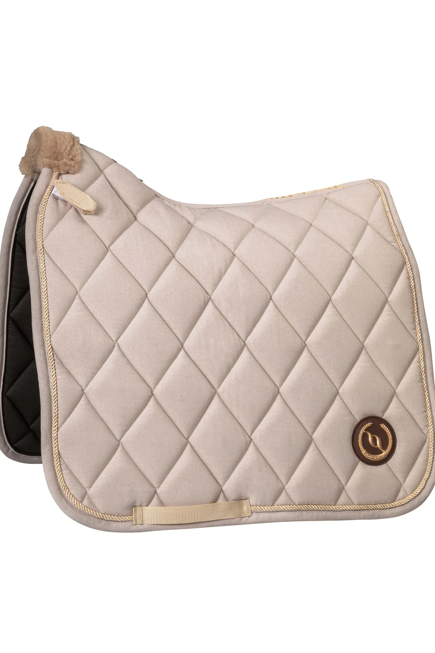 Den nye sjabraken i nydelig, melange-stoff er tilgjengelig i både brun og grå.Tvinnet snor langs kanten og stilig uekte lær, samt metallskilt på venstre side.Dekorert med vår vinge-logo i børstet metall. Fuskepels over manken, og feste til D-ringer.Gode pusteegenskaper og god fukthåndtering.Fyll laget av høykvalitets polyfyll og støtabsorberende skum.