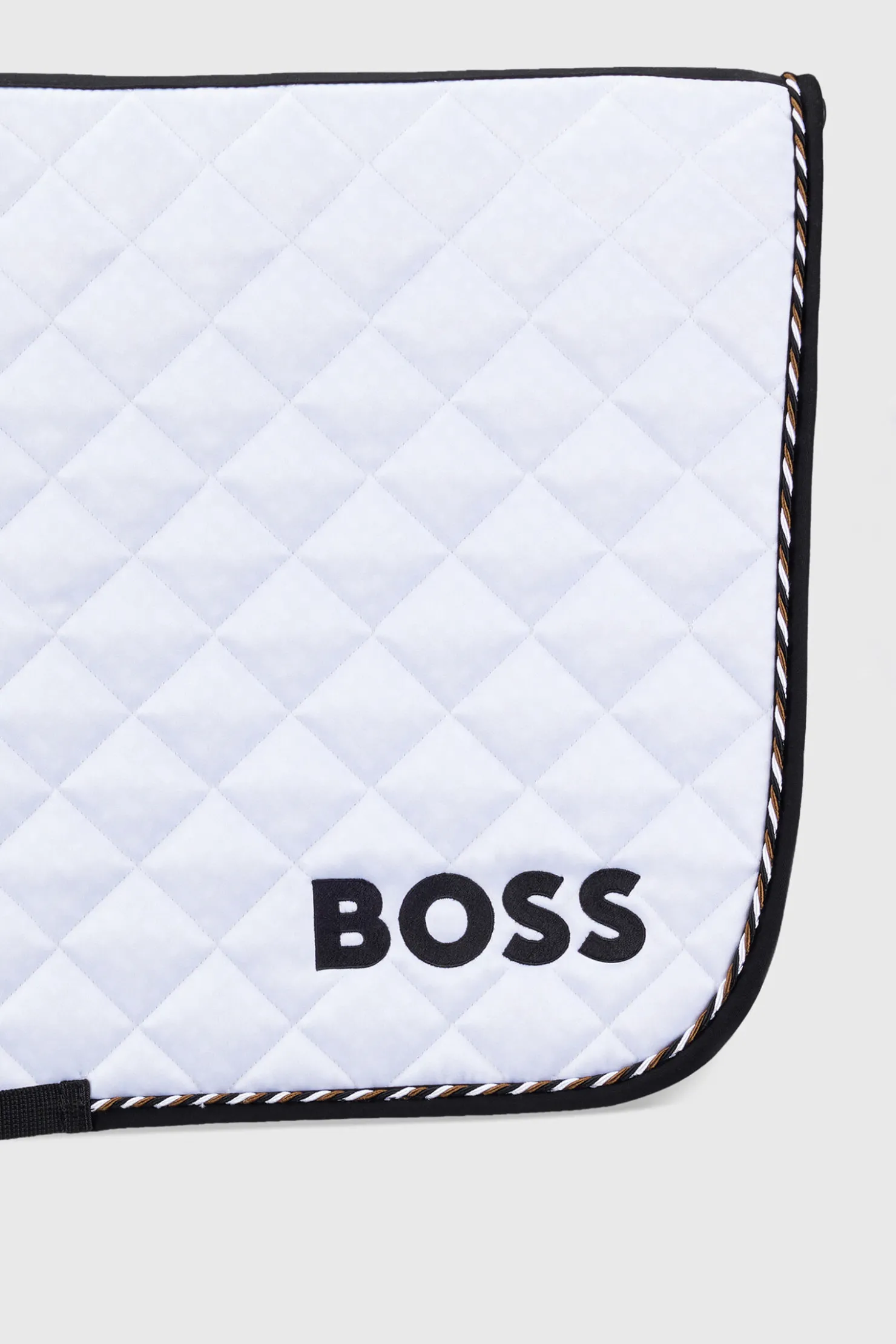 Sprangpad med BOSS monogram overalt. Høy kvalitet BOSS-logo broderi på venstre side, høy meder, frihet ved skulderen, optimal sadelposisjon, ingen glidning eller krølling. Innsiden i naturlig molton. Fylling transporterer fuktighet optimalt bort.