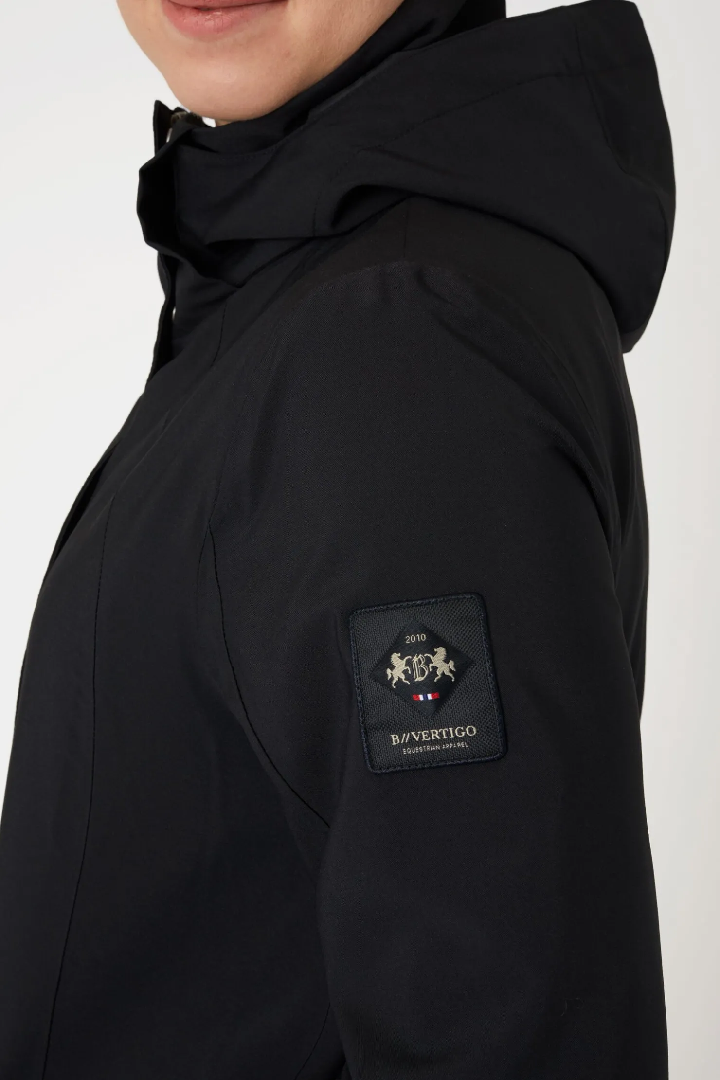 B Vertigo Caroline vanntett jakke beskytter deg perfekt mot regn og vind.Den lange passformen gir varme uten at den forhindrer bevegelsene dine eller ødelegger salen, takket være to splitter bak med magnetiske knapper.Store glidelåslommer med trykknapper holder eiendelene dine trygge.Hetten kan enkelt tas av med en glidelås.Elastiske mansjetter på innsiden av ermene er ekstra komfortable.Elastisk drasnor i livet gir en flatterende form.Bruk den med vår B Vertigo Caroline fleecevest for ekstra varme.