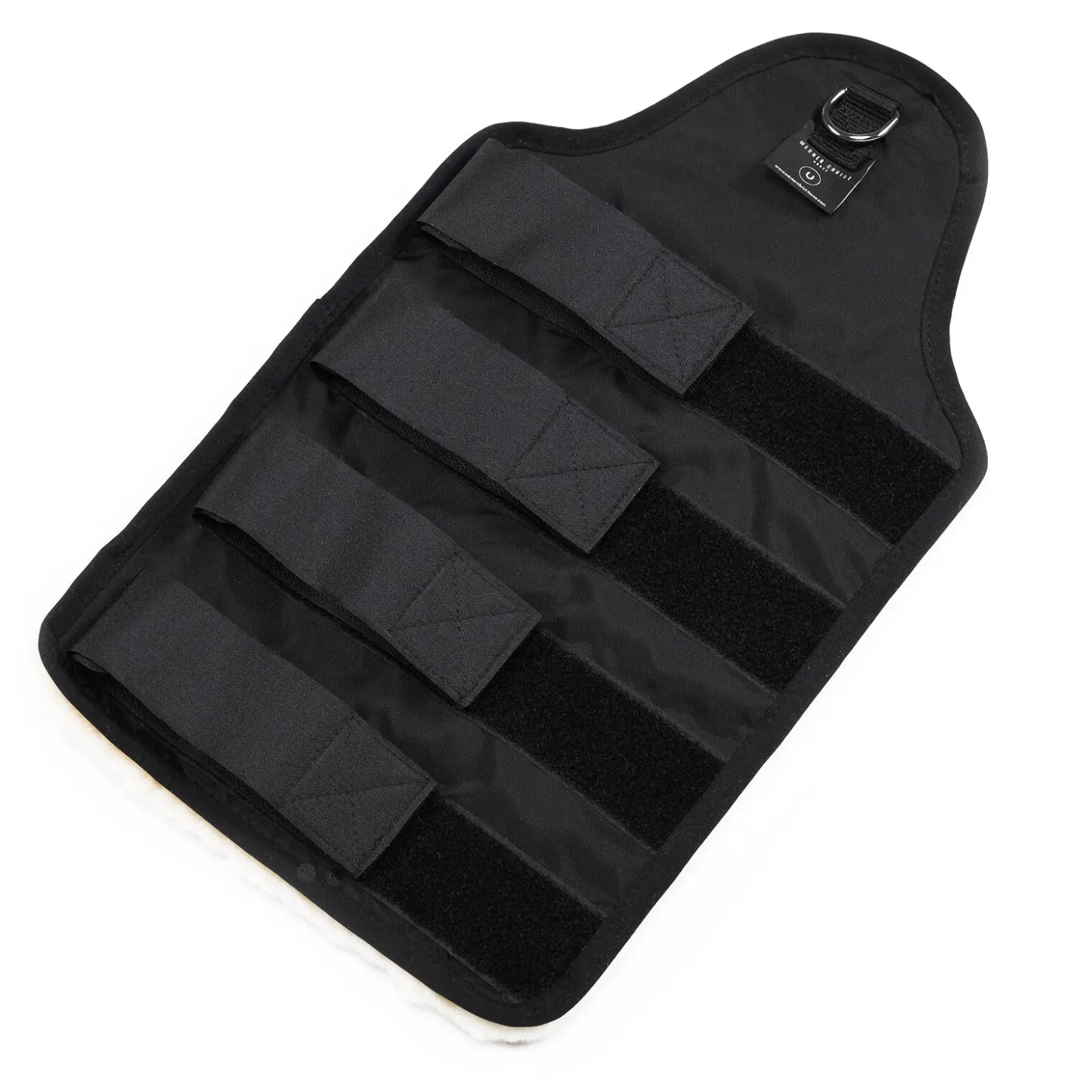 Halebeskytteren i saueskinn unngår gnaging på de øvre halehårene. Brukes både under transport, på stallen og ute på beitet. Lukkes med 4 borrelåsfester. Halebeskytteren festes til dekkenet ved hjelp av en D-ring. Vaskbart nylonstoff, lett å holde rent.