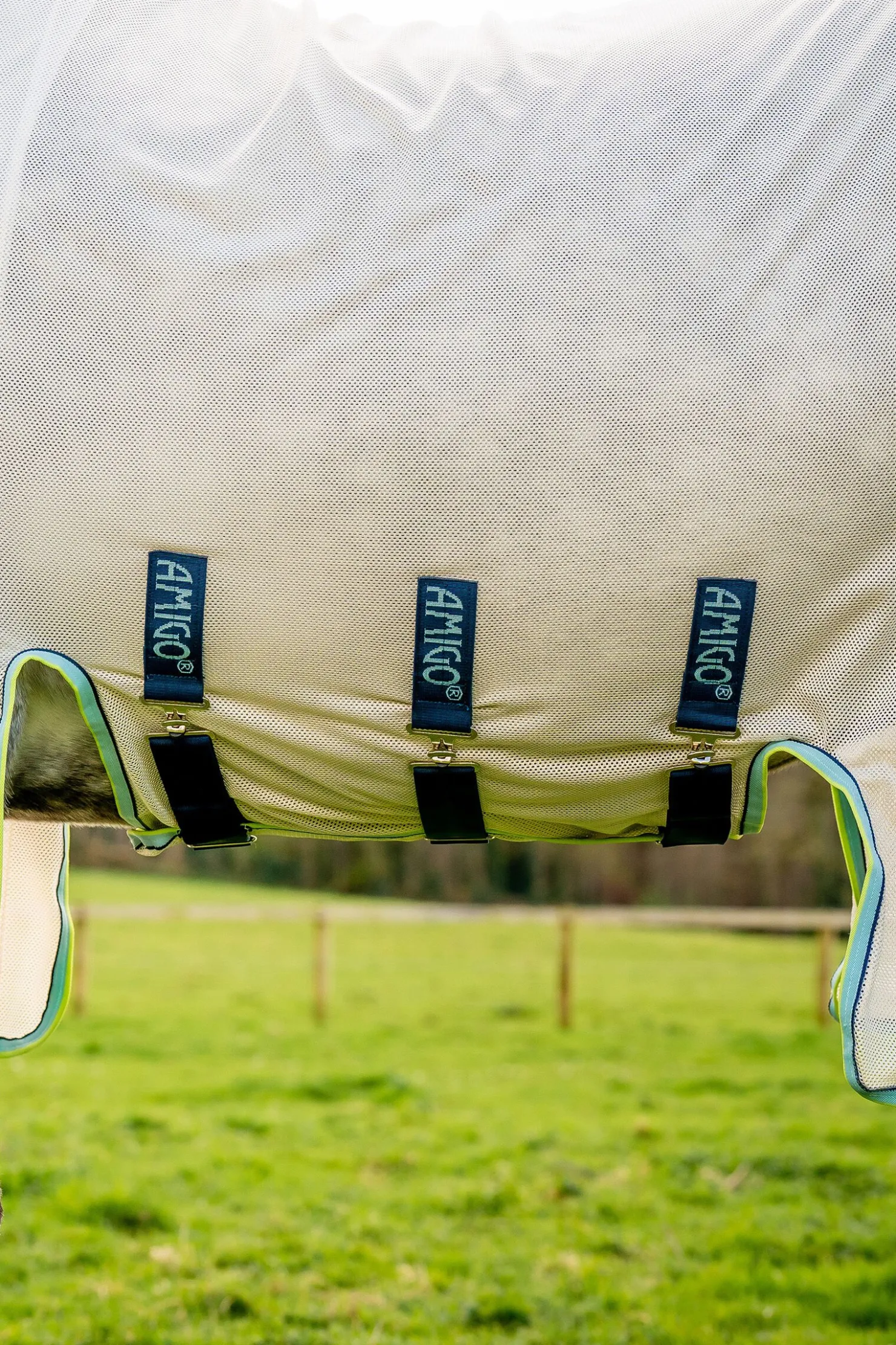 Bug Buster fluedekken tilbyr utmerket valuta for pengene. Det gir ikke bare beskyttelse mot UV-stråler, men beskytter også effektivt hesten din mot fluer, slik at hesten din igjen kan nyte å beite. Dekkenet er laget av slitesterkt, lett polyester mesh og gir 65% UV-beskyttelse samt full beskyttelse fra hode til hale mot plagsomme insekter. Den ekstra brede magelappen dekker generøst undersiden og festes med tre rette magereimer og en krok-og-løkke-lukning. Beinsnittene foran og bak gir bevegelsesfrihet samtidig som de gir en god passform, og den overdimensjonerte halelappen og fôret i skulder- og mankeområdet bidrar til å holde huden sunn. Den avtakbare nakkedelen med forbedret passform sikrer at hesten din forblir fullstendig dekket selv mens den beiter. Takket være de integrerte linerløkker kan dette dekkenet kombineres med det vanntette Fly Rug-fôret, som gir beskyttelse ikke bare om sommeren, men også i andre årstider når insektstikk kan være et problem. En fluemaske er tilgjengelig separat.