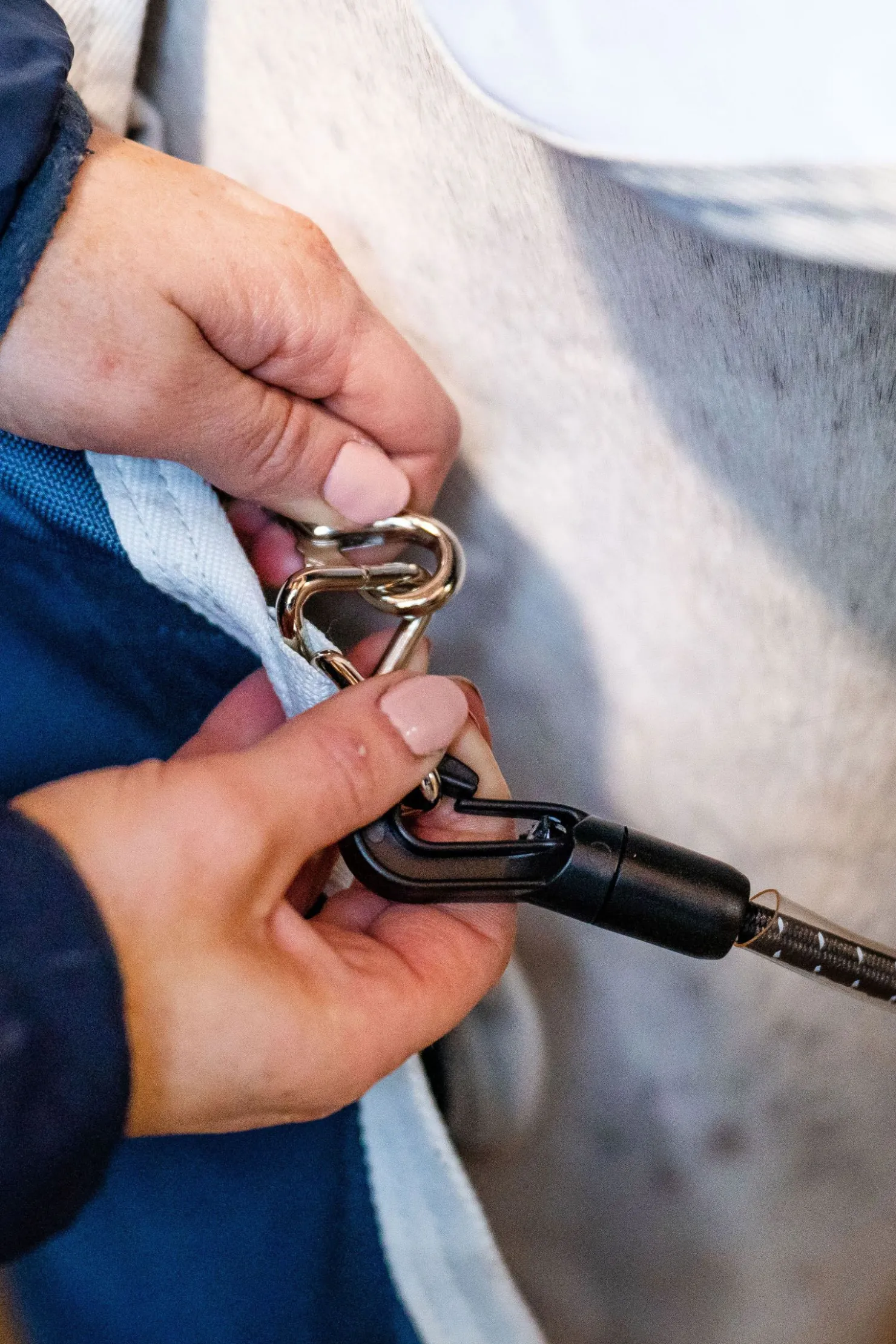 - Borrelås og klips-system festes enkelt og trygt til mange Horseware-dekken for å forhindre at de sklir