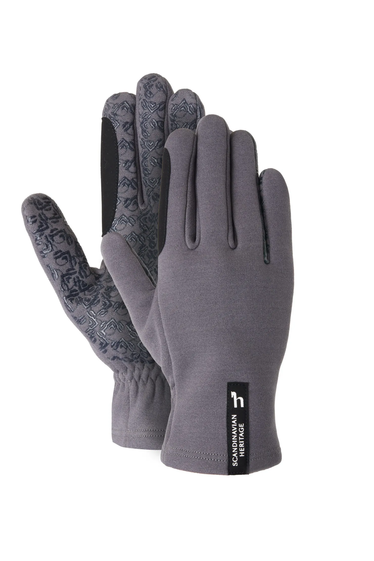 Ridehansker du drar på deg, med heldekkende silikontrykk som gir et godt grep om tøylene. Lite logomerke.