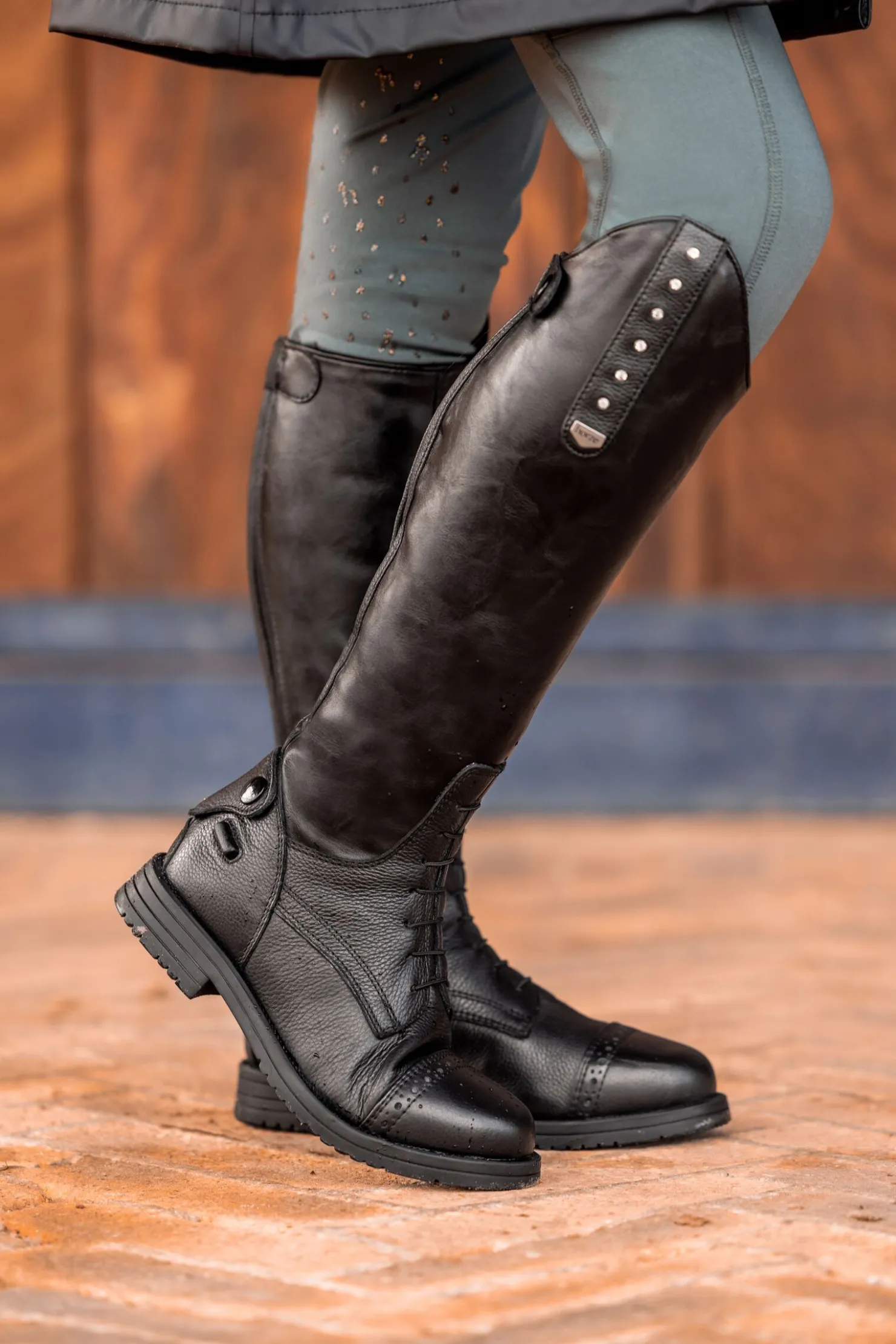 Denne nydelige ridestøvelen til barn kommer med to utskiftbare kanter.På dager du vil føle deg litt ekstra kan du gå for krystallkanten.Den enkle er et perfekt hverdagsvalg.Stilige punkt-dekorasjoner på tåhetten og elastiske lisser foran gir et stilig, men samtidig elegant utseende.Baksiden kommer med elastiske paneler langs den robuste YKK-glidelåsen, for å sikre god brukskomfort.Glidelåsbeskyttelse i topp og bunn lukkes med knapper.Støvlene kommer også med sporestøtte for en sikker støtte av sporene når det trengs.