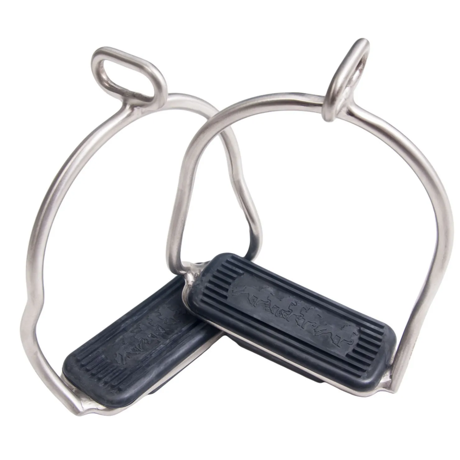 Sikkerhetsstigbøyler med S-formet sider i ren messing.Lett og elegant design i en enkelt sveiset tråd, for å minimere vekt uten at det går utover styrken.