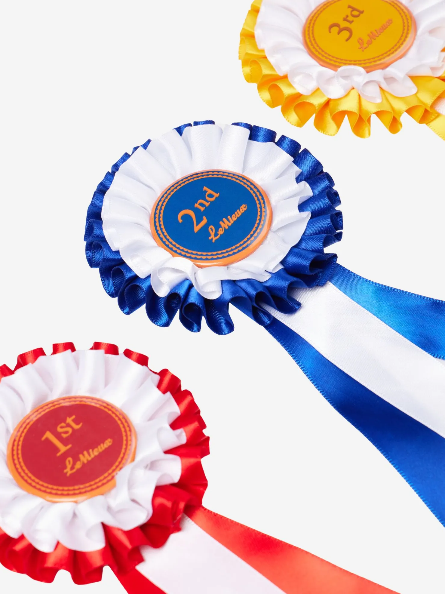 - Sett med tre sateng Hobby Horse vinnerrosetter (rød, blå, gul)
