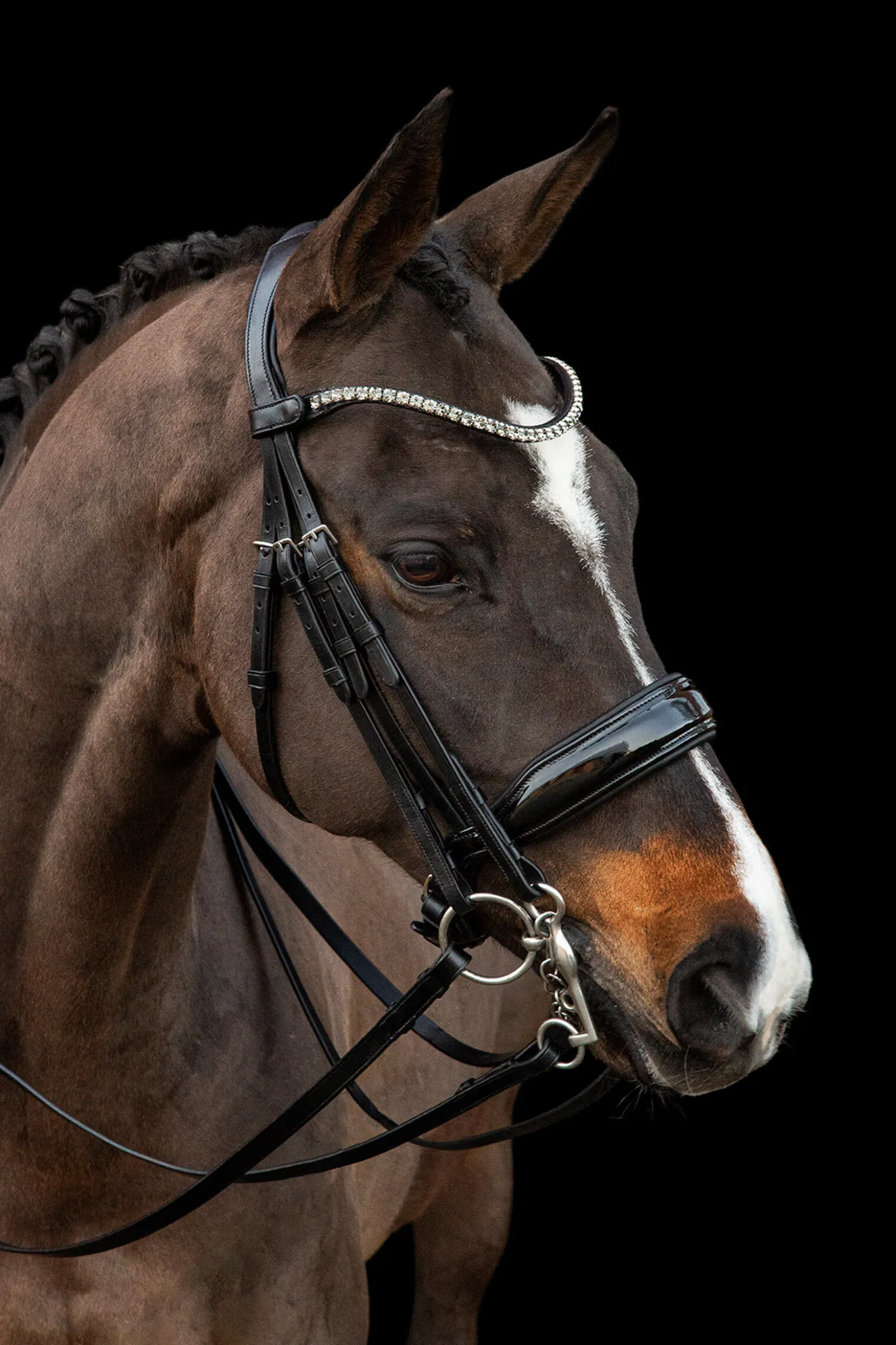 «Milazzo» premium dressur kandar etterlater ingenting å være ønsket. Med det anatomiske hodegjordet vil hesten din føle seg helt komfortabel både under trening og konkurranse. Kandar laget av høykvalitets, vegetabilsk garvet lær er visuelt imponerende med sin lakkerte nesereim og smale panneband med ekstra store krystaller.