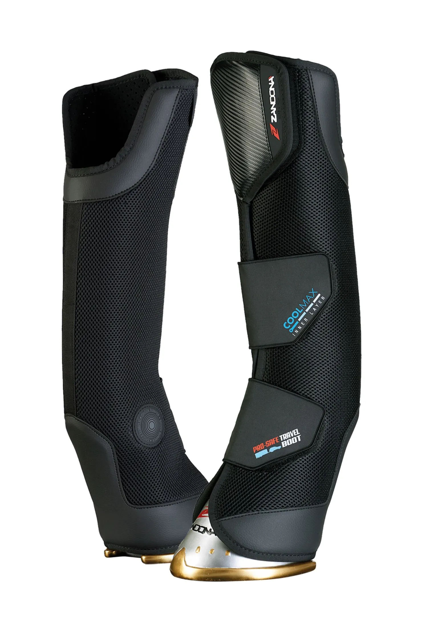 Pro-Safe transportbelegg er de nye transportbeleggene til Zandona, laget 100% i Italia. Beleggene er laget for å gi ekstra beskyttelse mot skrap og slag på hestens kne og hase under transport.De er laget med et spesielt High-Density PE-fôr for økt beskyttelse, stabilitet og komfort.Pro-Safe transportbelegg garanterer et høyt nivå av pusteegenskaper som holder hestens bein godt ventilert under transport. Dette takket være det innvendige laget i Coolmax®, som fjerner svette.Hestens sikkerhet øker betraktelig under transport takket være de integrerte beskytterne på kneet (på frambeinsbeleggene) og hasen (på bakbeinsbeleggene).Det er ekstra beskyttelse mot uheldige slag mot sensitive områder takket være støtabsorberende deler i NBR-gummi.Det raske og sikre festesystemet sikrer en trygg, komfortabel passform som er enkel å tilpasse.